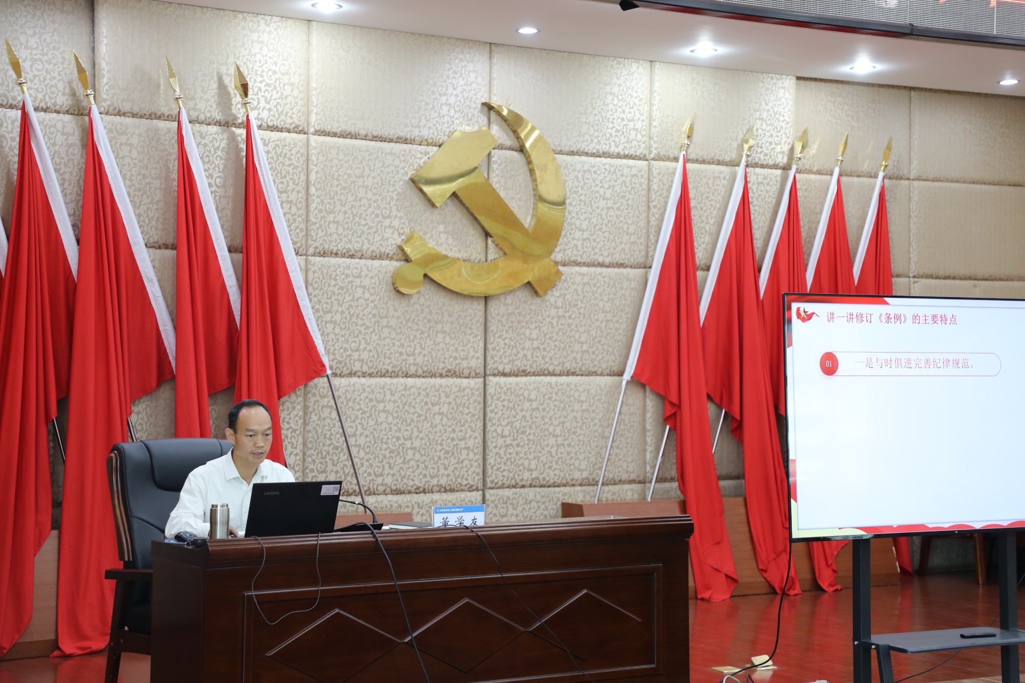 專題黨課中,董學(xué)友圍繞《中國共產(chǎn)黨紀(jì)律處分條例》(以下簡(jiǎn)稱《條例》)修訂的主要特點(diǎn)、修訂內(nèi)容、貫徹要求三個(gè)維度,對(duì)《條例》呈現(xiàn)出來的政治性、科學(xué)性、系統(tǒng)性和全面性等鮮明特點(diǎn)進(jìn)行闡述,并結(jié)合公司實(shí)際與典型案例對(duì)《條例》修訂內(nèi)容進(jìn)行逐條解讀,為大家上了一堂生動(dòng)的紀(jì)律黨課。