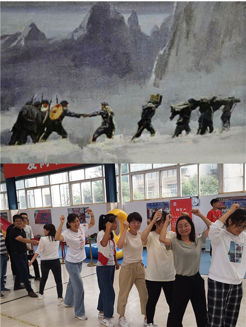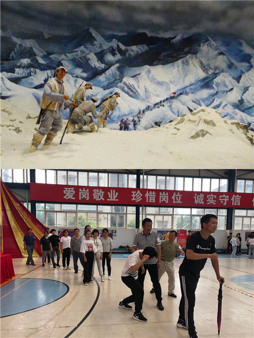 黨課后,參會(huì)人員來到公司籃球館參與主題黨建活動(dòng)?;顒?dòng)根據(jù)長(zhǎng)征路線的重要地點(diǎn)和發(fā)生的重要事件,設(shè)置了“翻雪山”、“過草地”、“飛奪瀘定橋”、“遵義會(huì)議”“四渡赤水”、“激戰(zhàn)臘子口”、“三軍會(huì)師”等七個(gè)游戲,參加活動(dòng)的人員隨機(jī)組建成“薪火相傳”、“錚錚鐵骨”、“眾志成城”、“百煉成鋼”、“勇往直前”五支隊(duì)伍參與活動(dòng)。