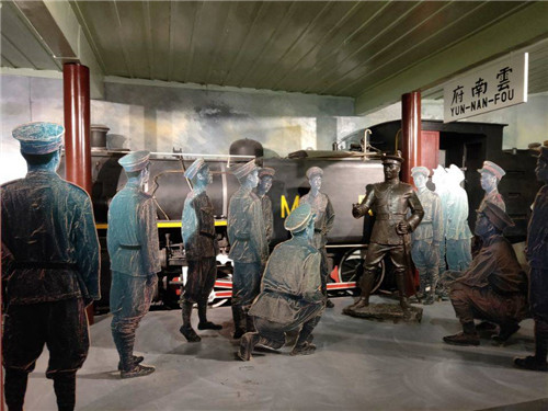 云南陸軍講武堂是中國近代最早的一所軍校,昭通分公司黨支部第一黨小組跟隨著講解員,走進陸軍講武堂的展廳內(nèi)部參觀學(xué)習(xí)。展廳內(nèi)部有大量的史料展品、歷史照片、紙質(zhì)文物以及逼真的戰(zhàn)爭模擬環(huán)境?;爻套哌M一樓展廳時,朱德、葉劍英等一大批愛國將士的名字出現(xiàn)在講武堂的展廳兩側(cè),參加學(xué)習(xí)的黨員同志們心里頓時燃起一股愛國之情。