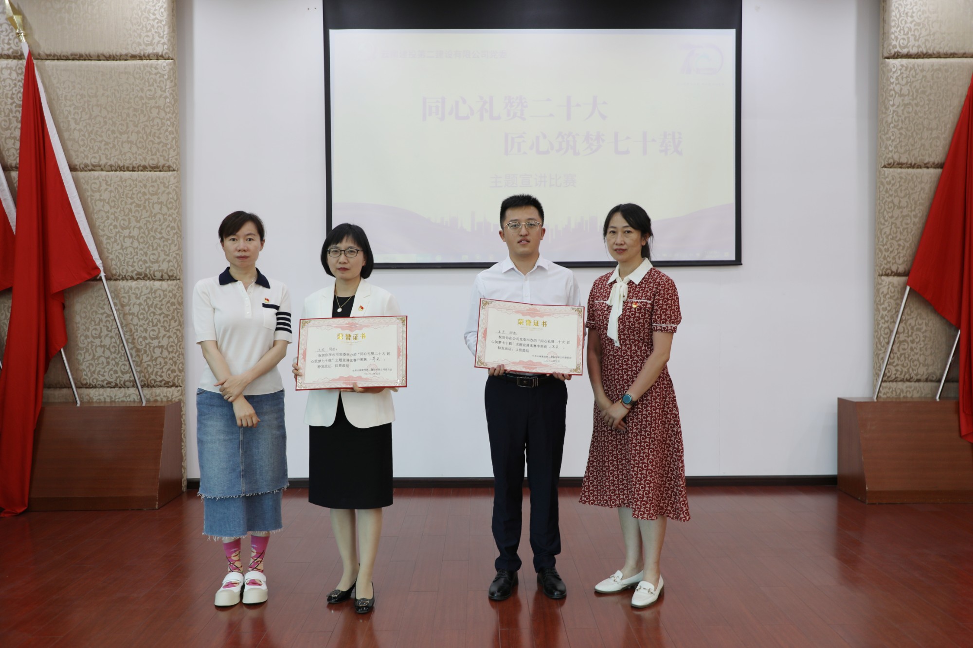 來自各基層單位的22個宣講作品已于4月26日復賽進行比拼,最終10個作品進入決賽角逐。本次比賽旨在全面學習把握落實黨的二十大精神,全面貫徹習近平新時代中國特色社會主義思想,將黨的二十大精神與公司成立70周年主題相結(jié)合,推動黨的創(chuàng)新理論貫徹落實到公司的改革發(fā)展中來,營造濃厚氛圍,講好二建故事。
