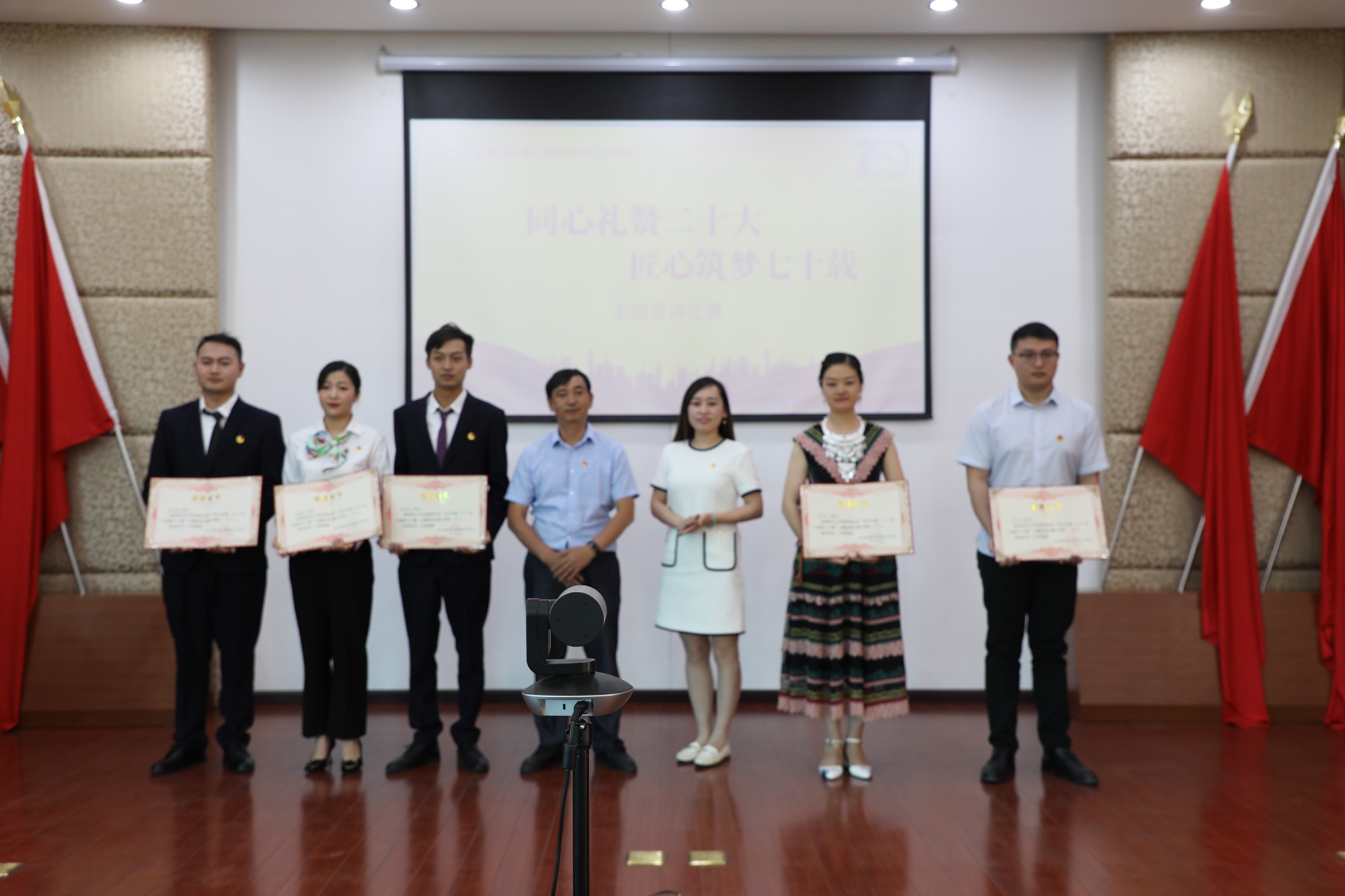 5月8日下午,由公司黨委主辦,工會、團委協(xié)辦的“同心禮贊二十大 匠心筑夢七十載”主題宣講比賽在二樓會議室舉辦。公司黨委副書記、董事長陳定華,公司領(lǐng)導孫明書,黨委委員、總經(jīng)濟師陰明珉,黨委委員、工會主席胡云紅,黨委委員、財務(wù)總監(jiān)代映華出席活動并擔任評委。