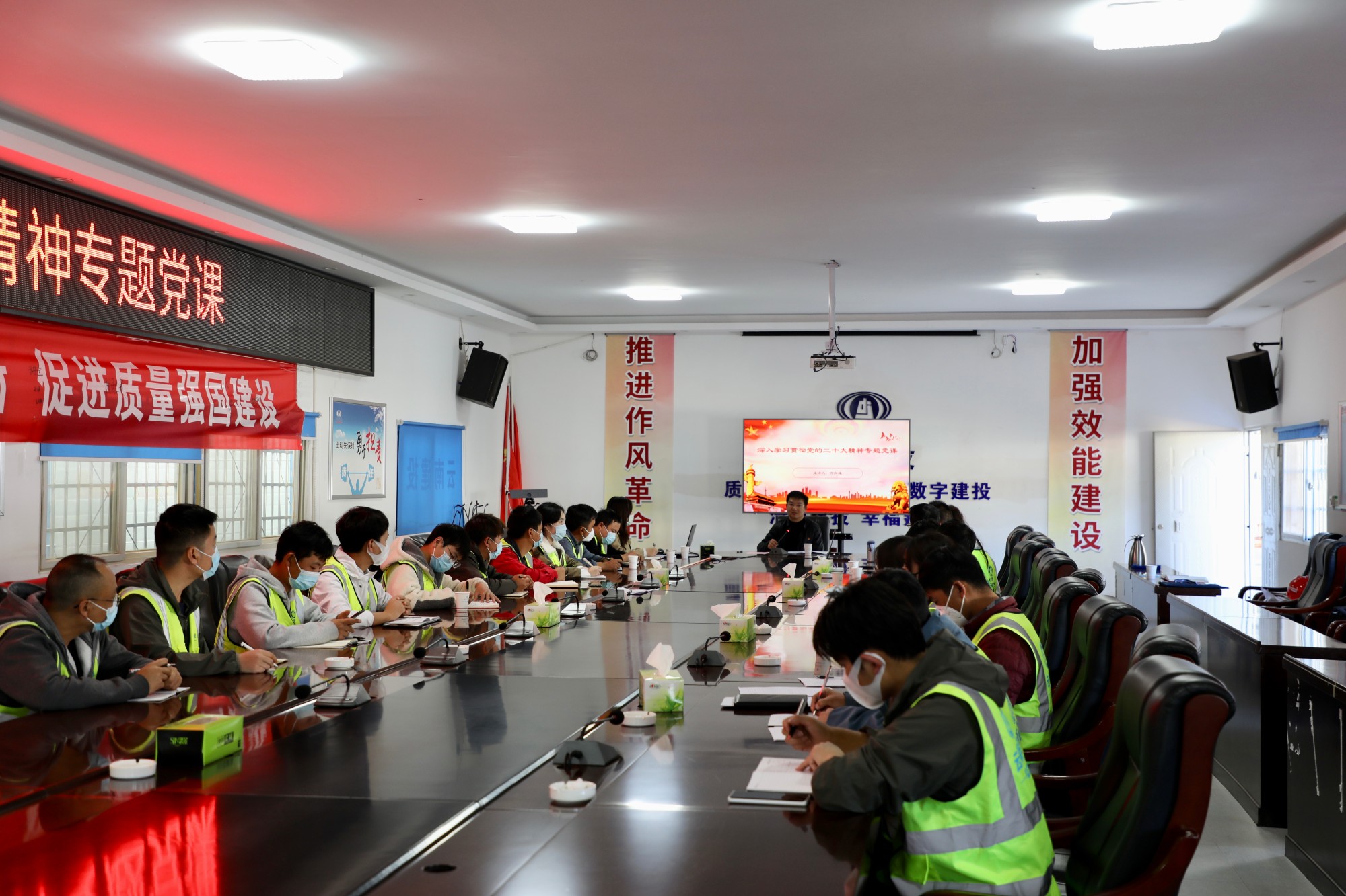 12月7日下午,公司黨委書記、副董事長(zhǎng)萬(wàn)向遵到云南財(cái)經(jīng)大學(xué)安寧校區(qū)新四棟項(xiàng)目為項(xiàng)目黨員干部職工宣講黨的二十大精神。第十一直管部班子成員、云南財(cái)經(jīng)大學(xué)安寧校區(qū)新四棟項(xiàng)目全體管理人員聆聽黨課宣講。