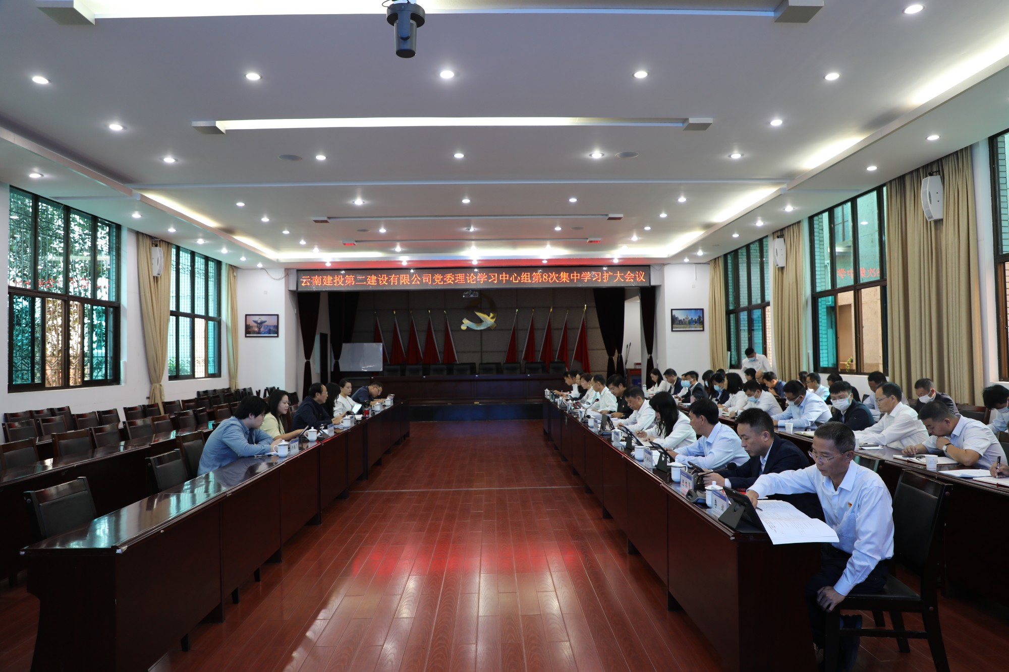 9月20日上午,公司黨委召開2022年理論中心組第8次集中學習擴大會議,集團黨委理論學習中心組列席旁聽第二組副組長、總承包公司黨委書記、副董事長李曙斌攜集團黨委理論學習中心組列席旁聽第二組成員出席會議,公司領導班子、擴大班子成員,職能部門負責人,部分黨支部書記參加會議,會議由公司黨委書記、副董事長萬向遵主持。