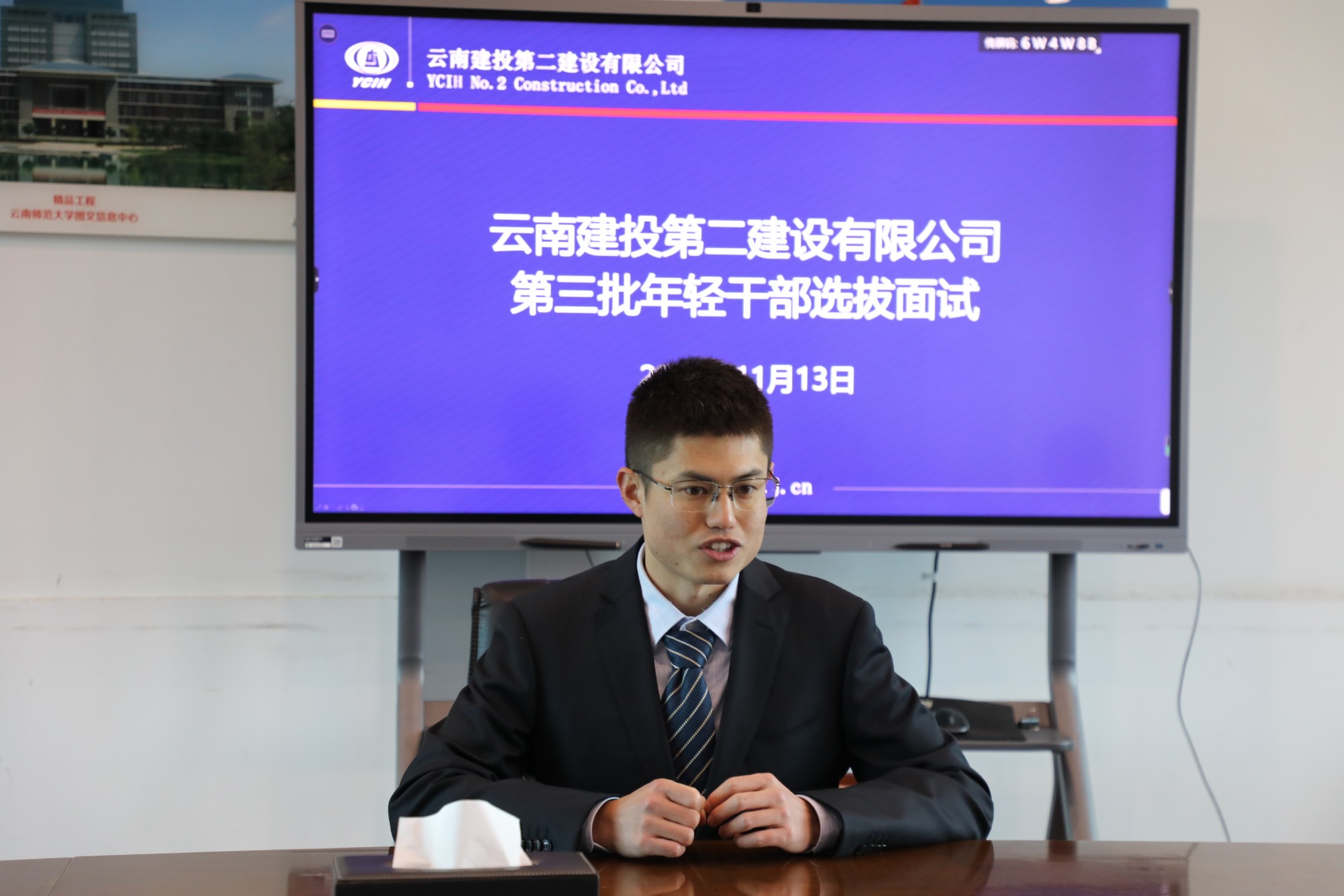 面試包括競聘演講以及評委提問兩個環(huán)節(jié)。面試人員從工作經(jīng)歷、競聘優(yōu)勢、取得的成績等各個方面向領(lǐng)導(dǎo)評委充分展現(xiàn)自己。“從懵懂無知的少年到現(xiàn)在我能獨立撐起一個項目的安全管理工作……”“這個項目我最大的收獲是……”“我未來的職業(yè)規(guī)劃是……”面對評委的提問,面試人員自信沉著應(yīng)答,充分展現(xiàn)出二建青年專業(yè)知識過硬、團隊協(xié)作有方,有青春活力、敢打敢拼的良好形象。本次面試還對3名未能到現(xiàn)場的一線工作人員進行了視頻面試。
