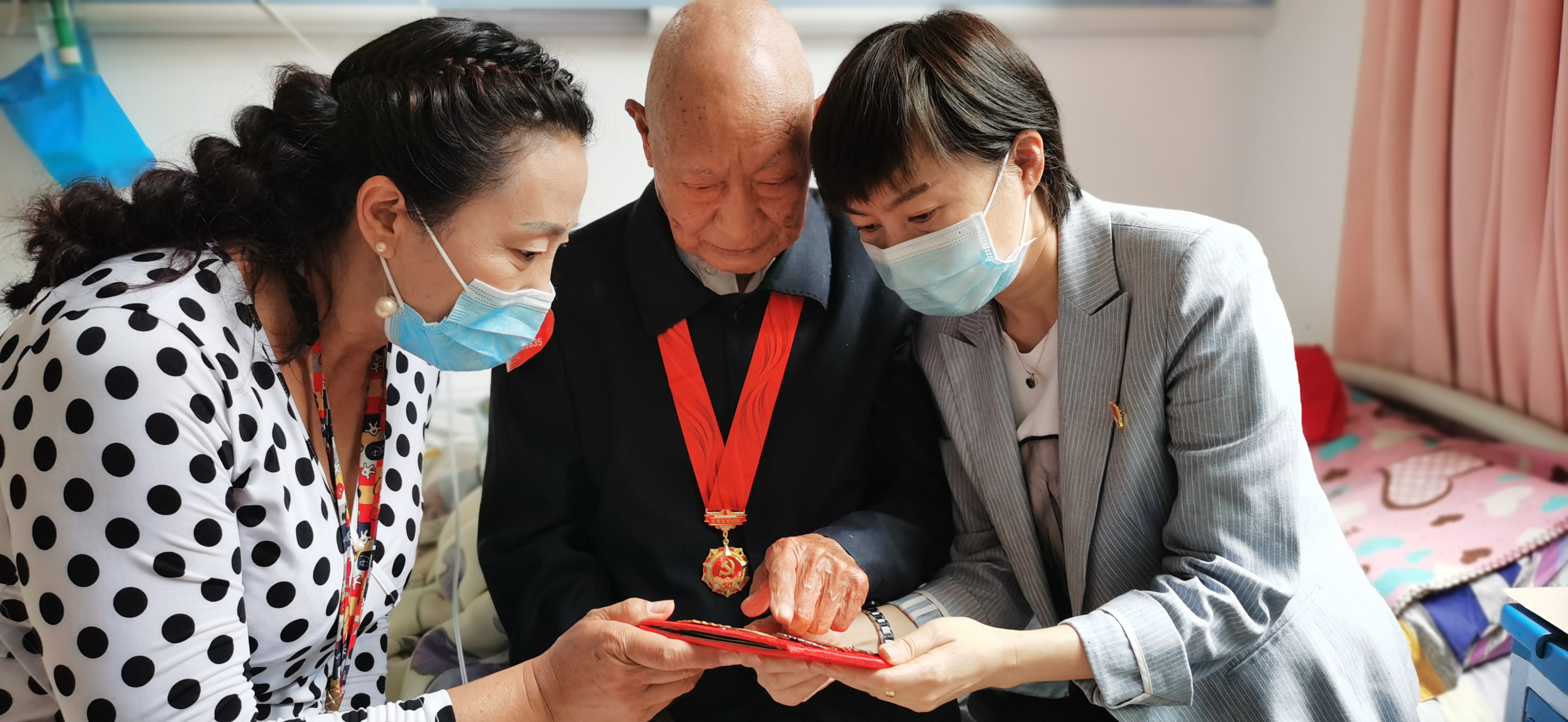 萬(wàn)向遵一行到解放軍昆明總醫(yī)院慰問(wèn)了“光榮在黨50年”老黨員、離休干部李德立。李德立于1951年加入中國(guó)共產(chǎn)黨,至今已有70年黨齡,他參加過(guò)解放戰(zhàn)爭(zhēng);1955裁軍后在昆明軍區(qū)后勤部53分部任指導(dǎo)員;1972年建工局干部組組長(zhǎng)、政工組組長(zhǎng);1979年從建工局到二公司任工會(huì)主席直至離休,目前在醫(yī)院治療。萬(wàn)向遵為李德立佩戴了“光榮在黨50年”獎(jiǎng)?wù)拢⒆屑?xì)詢問(wèn)了李德立的身體狀況,詳細(xì)了解他的生活情況。萬(wàn)向遵叮囑李德立要保重身體,積極配合醫(yī)生治療,鼓勵(lì)他樹(shù)立信心,早日戰(zhàn)勝病魔。