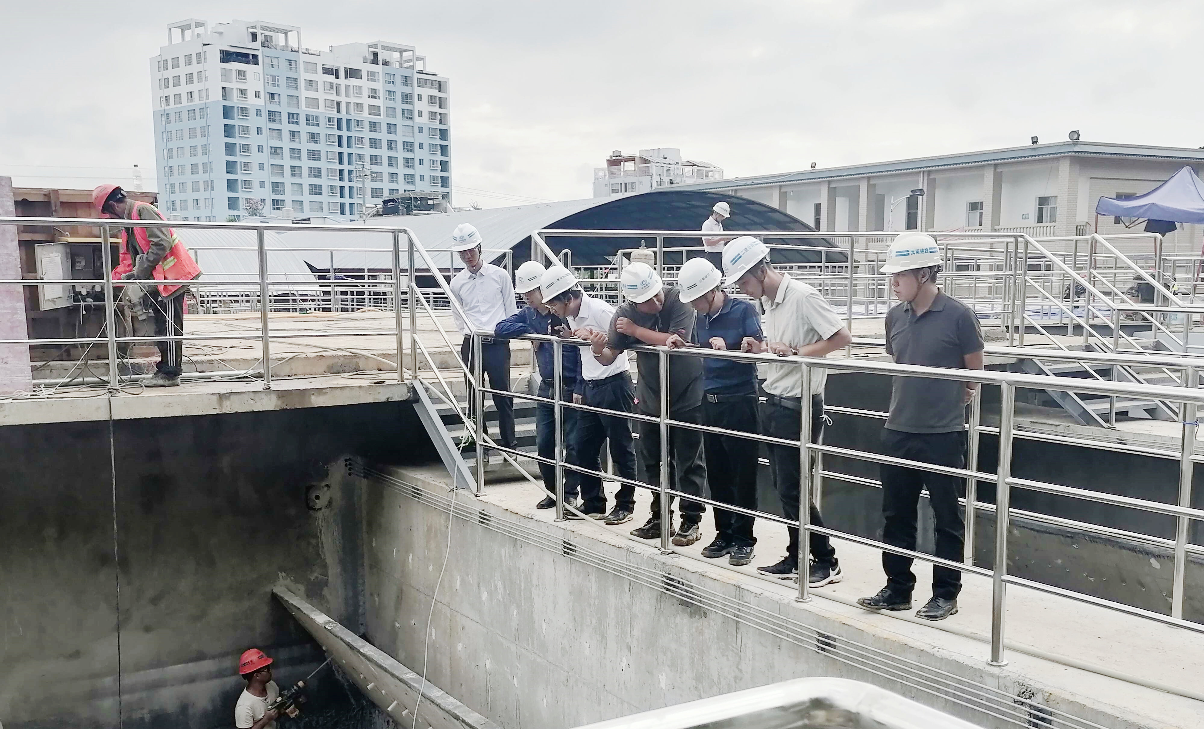陳定華、萬向遵一行深入到施工現(xiàn)場進(jìn)行查看,實(shí)地了解項(xiàng)目施工情況,對(duì)土建及安裝單位的安全及現(xiàn)場進(jìn)度、質(zhì)量的管控進(jìn)行檢查。陳定華對(duì)項(xiàng)目團(tuán)隊(duì)做出的努力給予了肯定,并指出,一是在施工過程中,要嚴(yán)把安全關(guān)、質(zhì)量關(guān),加強(qiáng)施工前監(jiān)督管理工作。二是根據(jù)施工合同要求,做好進(jìn)度控制工作,嚴(yán)格落實(shí)糾偏措施。三是落實(shí)好集團(tuán)“四保一控一樹”要求,做好現(xiàn)場管控。四是加強(qiáng)項(xiàng)目團(tuán)隊(duì)建設(shè),注重人才培養(yǎng),切實(shí)提升項(xiàng)目綜合管理能力。五是三水廠擴(kuò)建是民生工程,要加快施工進(jìn)度,確保完成節(jié)點(diǎn),今年下半年文山市民不再為飲用水堪憂。