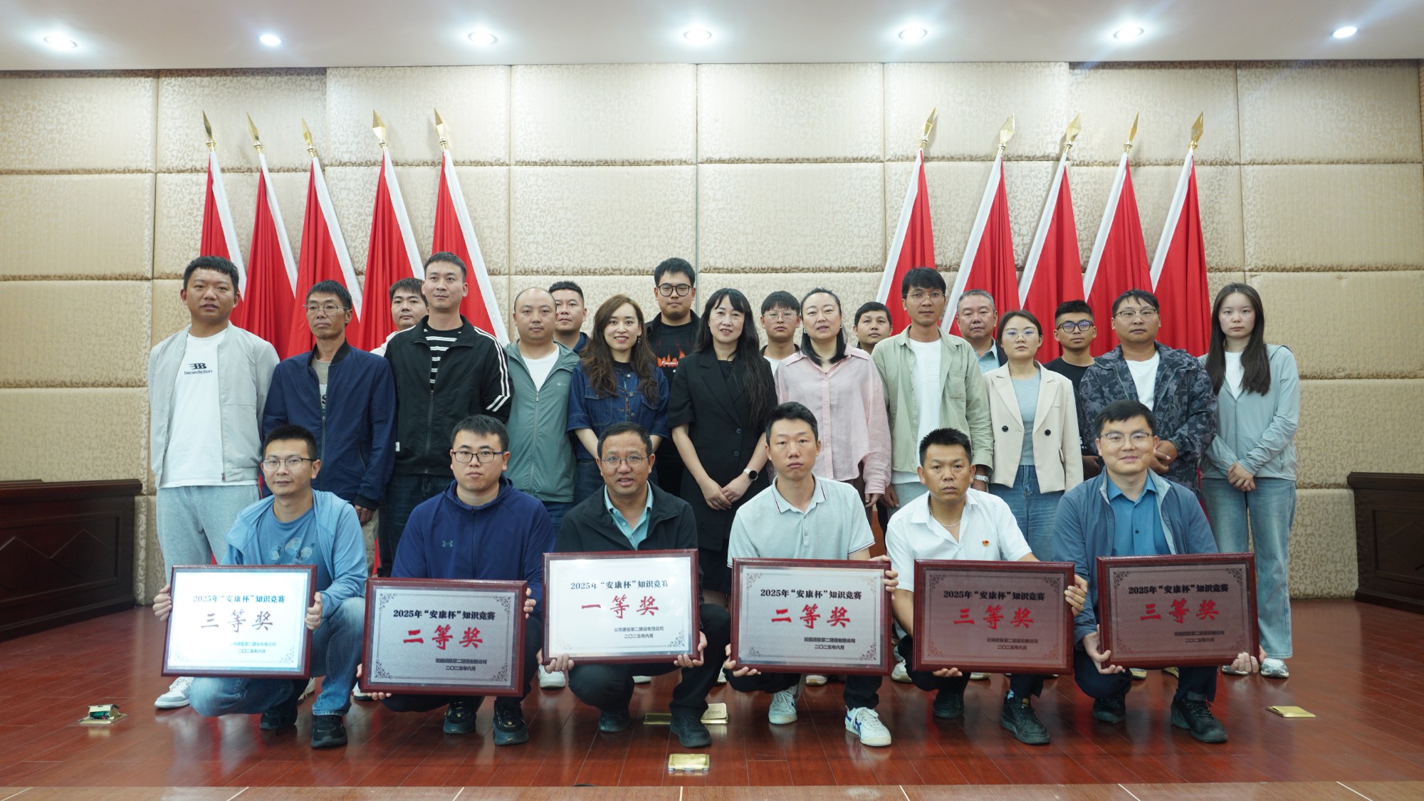 本次競賽采用集團(tuán)“云南建投學(xué)習(xí)成長平臺”線上答題形式,旨在以賽促學(xué)、以賽促產(chǎn),提升全員安全生產(chǎn)意識,助推公司項(xiàng)目管理提質(zhì)增效。比賽中,各參賽隊(duì)嚴(yán)格遵守競賽規(guī)則,選手們?nèi)褙炞?、認(rèn)真答題,展現(xiàn)出了扎實(shí)的安全生產(chǎn)知識功底與嚴(yán)謹(jǐn)?shù)谋荣悜B(tài)度。經(jīng)過激烈的角逐,最終有6支隊(duì)伍脫穎而出。第十二直管部榮獲一等獎(jiǎng),第九直管部、市政分公司摘得二等獎(jiǎng),第一直管部、第六直管部、第七直管部獲得三等獎(jiǎng)。公司領(lǐng)導(dǎo)分別為獲獎(jiǎng)隊(duì)伍頒獎(jiǎng)并合影留念。