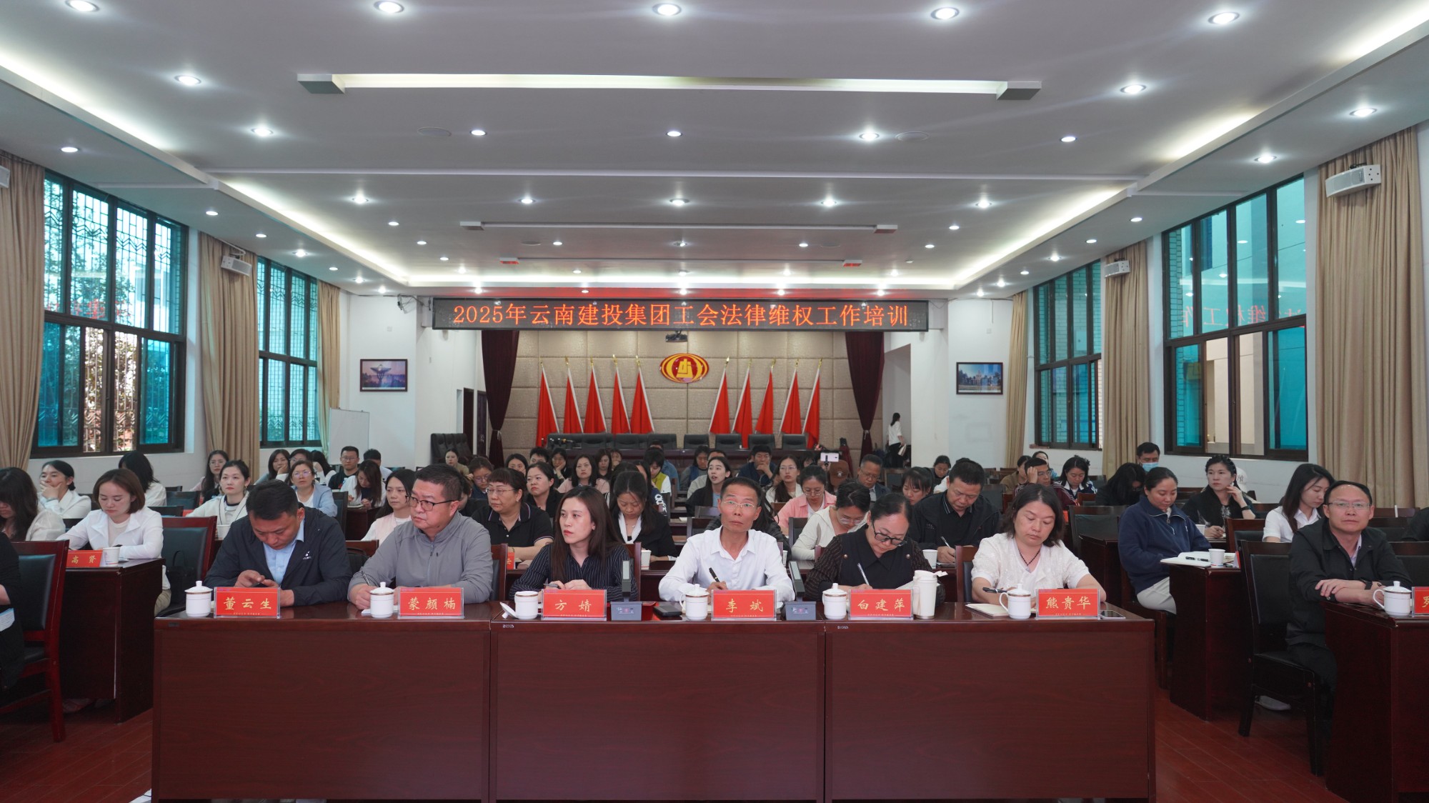 5月23日下午,集團(tuán)工會(huì)在公司舉辦工會(huì)法律維權(quán)工作培訓(xùn),實(shí)地調(diào)研公司新時(shí)代“楓橋經(jīng)驗(yàn)”工會(huì)實(shí)踐工作。云南省總工會(huì)法律和維權(quán)工作部一級(jí)主任科員梁媛、集團(tuán)工會(huì)副主席倪燦華、集團(tuán)直屬工會(huì)主席方婧,公司黨委委員、董事、副總經(jīng)理(主持工作)臧慶澤,黨委委員、工會(huì)主席、副總經(jīng)理李斌出席會(huì)議,集團(tuán)二級(jí)單位工會(huì)干部共80余人參加會(huì)議。