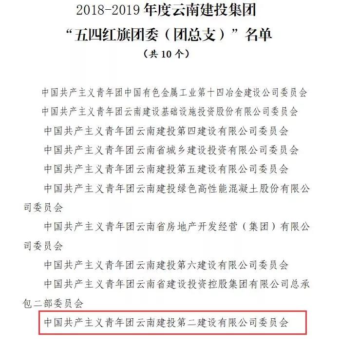 第十六直管部團(tuán)支部、第十九直管部團(tuán)支部獲評2018-2019 年度云南建投集團(tuán)“五四紅旗團(tuán)支部”。