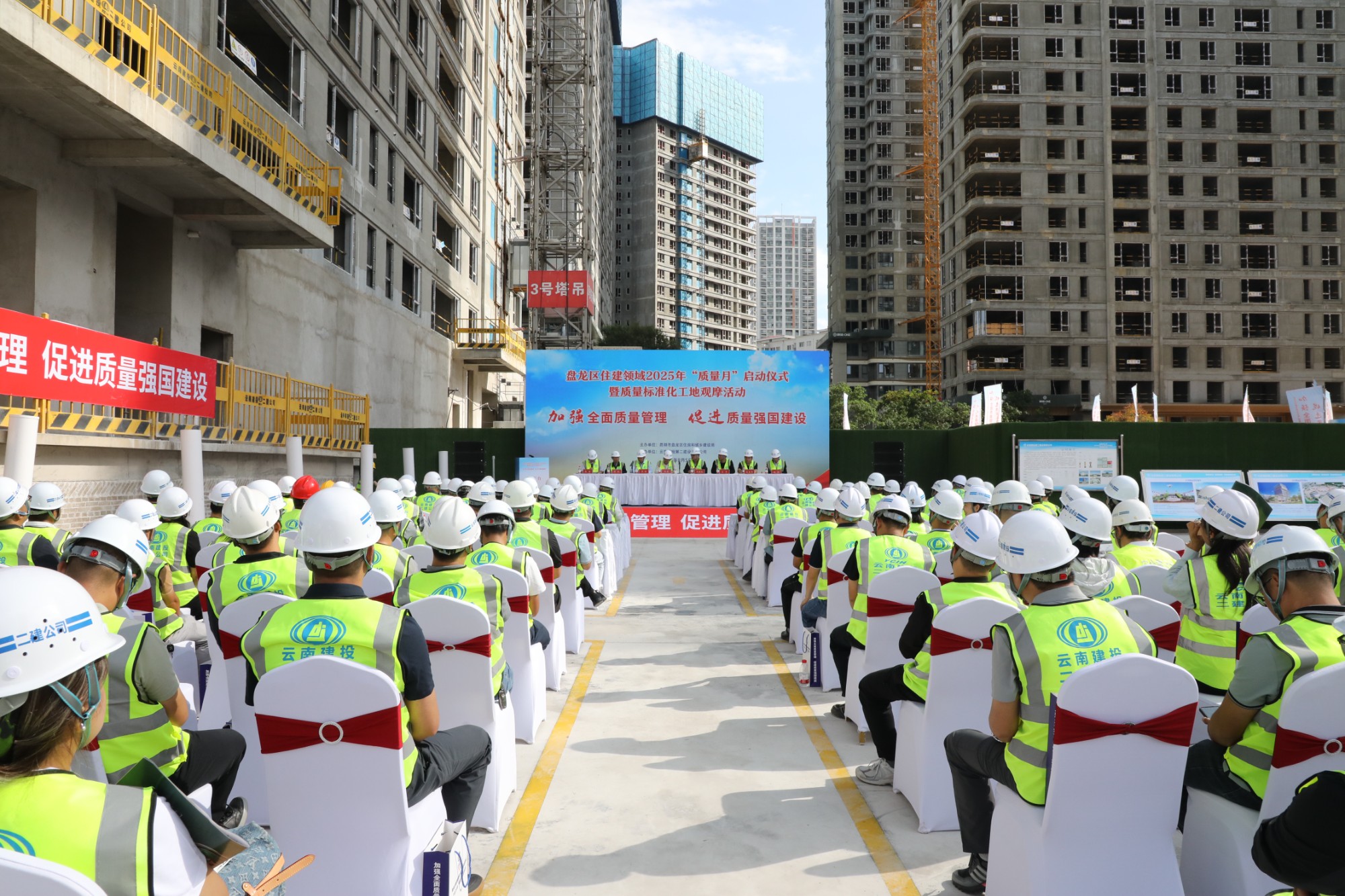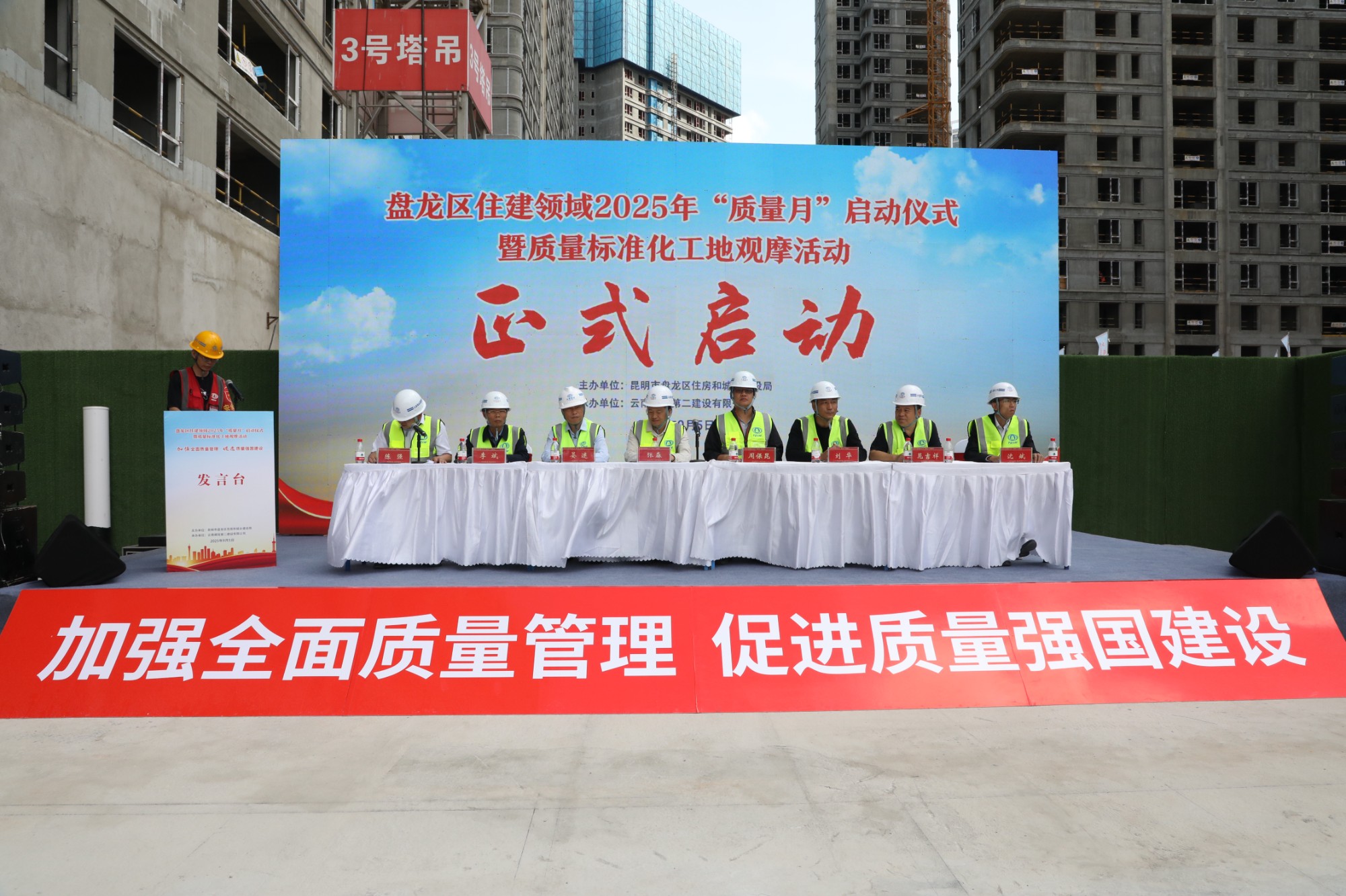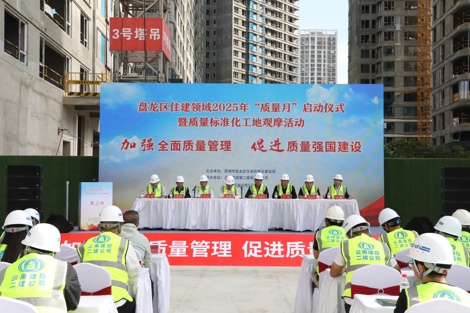 9月5日上午,盤(pán)龍區(qū)住建領(lǐng)域2025年“質(zhì)量月”啟動(dòng)儀式暨質(zhì)量標(biāo)準(zhǔn)化工地觀摩活動(dòng)在公司金樾玖璋小區(qū)項(xiàng)目舉行。昆明市建設(shè)工程質(zhì)量安全監(jiān)督管理總站房建處副處長(zhǎng)張淼,公司黨委委員、董事、副總經(jīng)理(主持工作)晏迷,黨委委員、職工董事、副總經(jīng)理、工會(huì)主席李斌,昆明市生態(tài)環(huán)境局盤(pán)龍分局,盤(pán)龍區(qū)住建局、房屋安全鑒定和建設(shè)工程質(zhì)量安全監(jiān)督站、市場(chǎng)監(jiān)督管理局相關(guān)領(lǐng)導(dǎo)出席活動(dòng)。