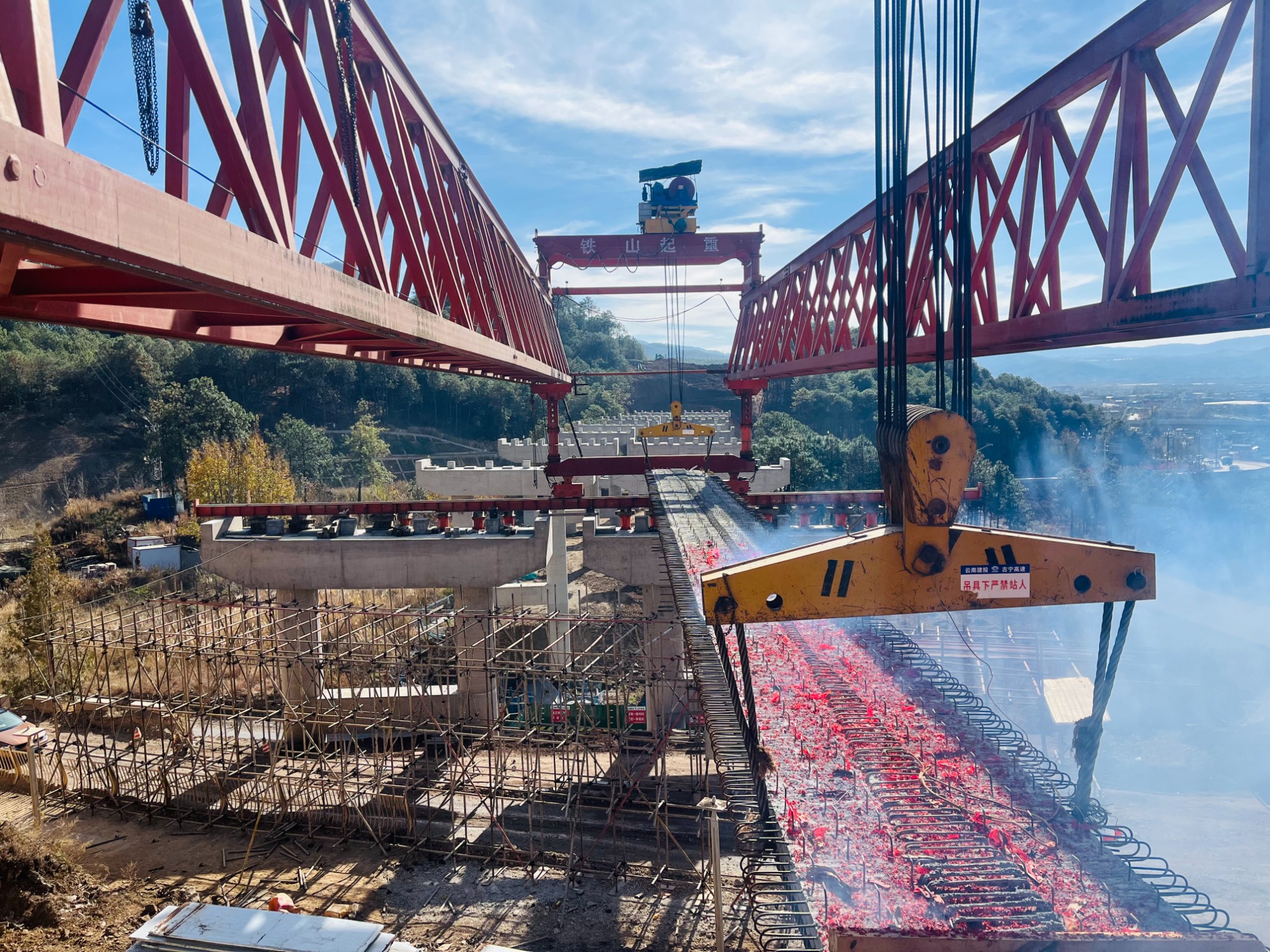 為保證梁板安裝的順利進(jìn)行,項(xiàng)目部對(duì)運(yùn)梁、提梁、架梁等各道施工工序制定了詳細(xì)的專項(xiàng)方案和應(yīng)急預(yù)案,嚴(yán)格按照架梁操作規(guī)程進(jìn)行規(guī)范化、標(biāo)準(zhǔn)化施工,并做好技術(shù)交底和工前驗(yàn)收,確保T梁安全、有序、精準(zhǔn)架設(shè)。首片預(yù)制T梁的成功架設(shè),為古寧高速項(xiàng)目全線后續(xù)工作打開了良好局面。