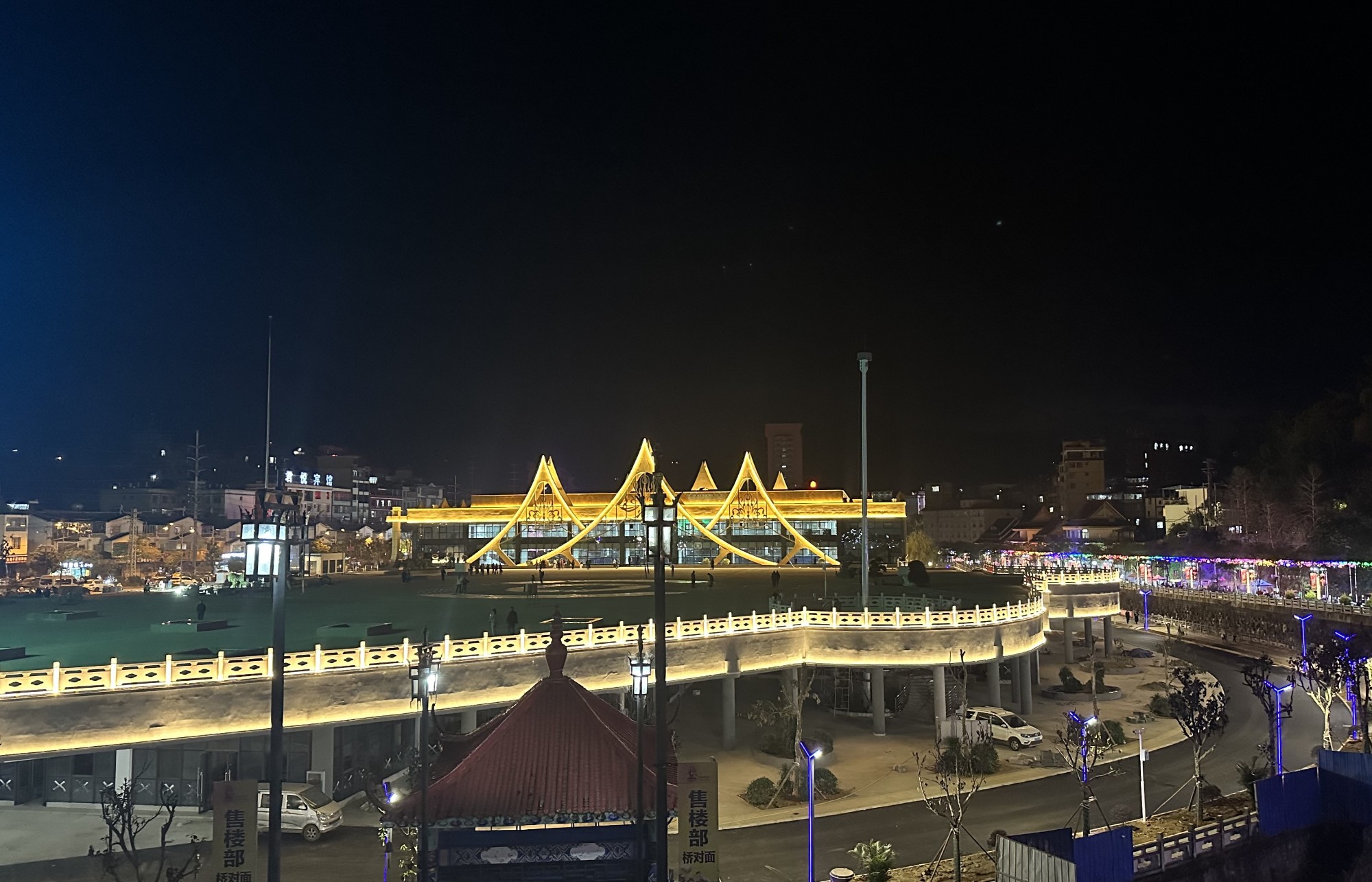 當(dāng)夜幕降臨之時,金平縣國門文化交流中心建設(shè)項(xiàng)目燈火通明,描摹出其獨(dú)具地方特色的造型,宛若一顆明星,閃耀在金平這一邊陲小縣城里。在這片充滿希望的熱土之上,每一位參與者都在用自己的汗水和智慧,書寫著城市發(fā)展的新篇章。