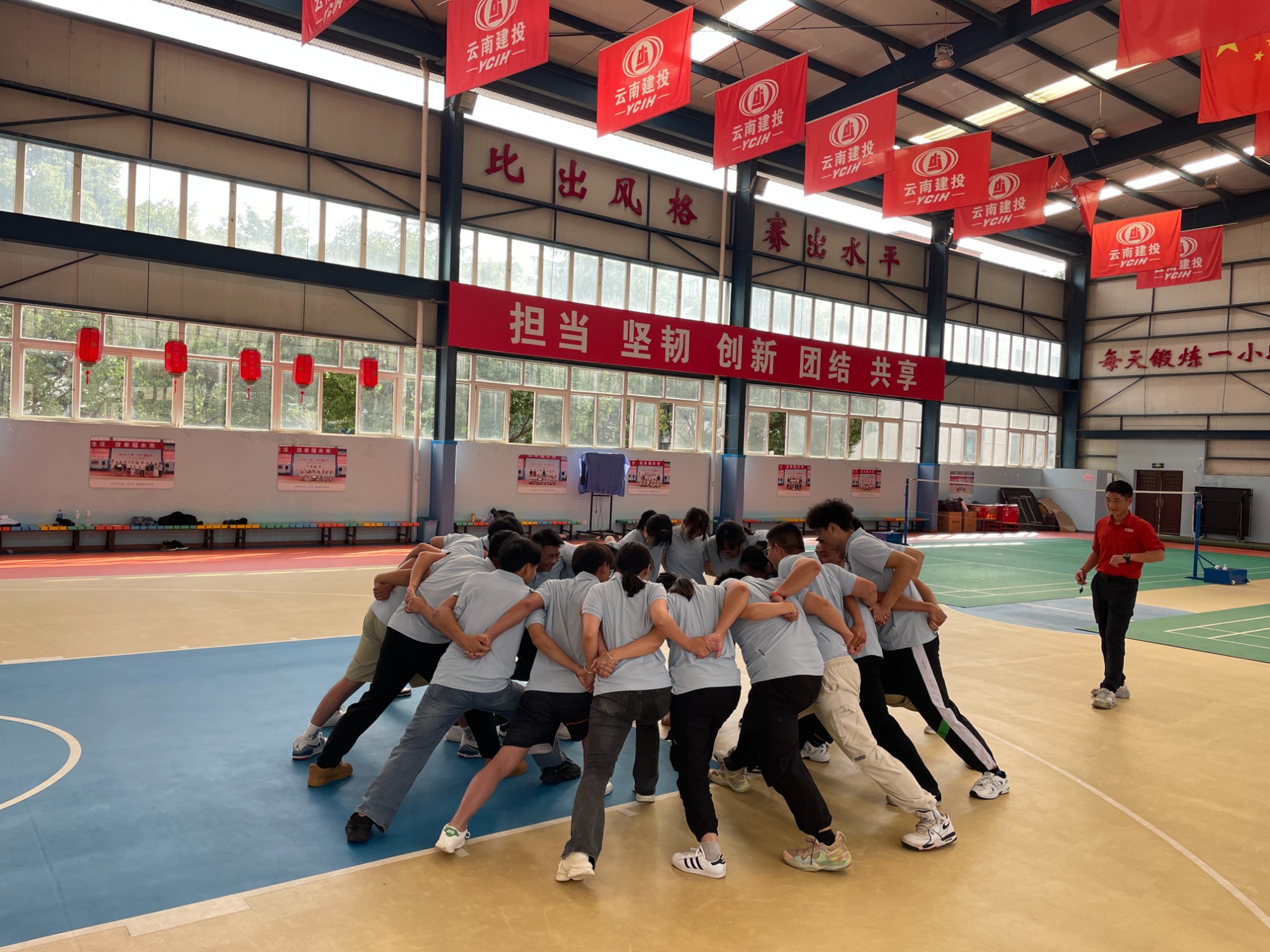 7月25日,公司組織新員工在籃球館開(kāi)展了為期一天的拓展訓(xùn)練活動(dòng)。新員工被有序分成2支隊(duì)伍,共同體驗(yàn)了動(dòng)力圈、超音速、盲人方正、電網(wǎng)、激情百分百等團(tuán)隊(duì)活動(dòng)?;顒?dòng)中,大家目標(biāo)一致、相互信任、默契配合,決策執(zhí)行、團(tuán)結(jié)協(xié)作能力得到了有效提升。