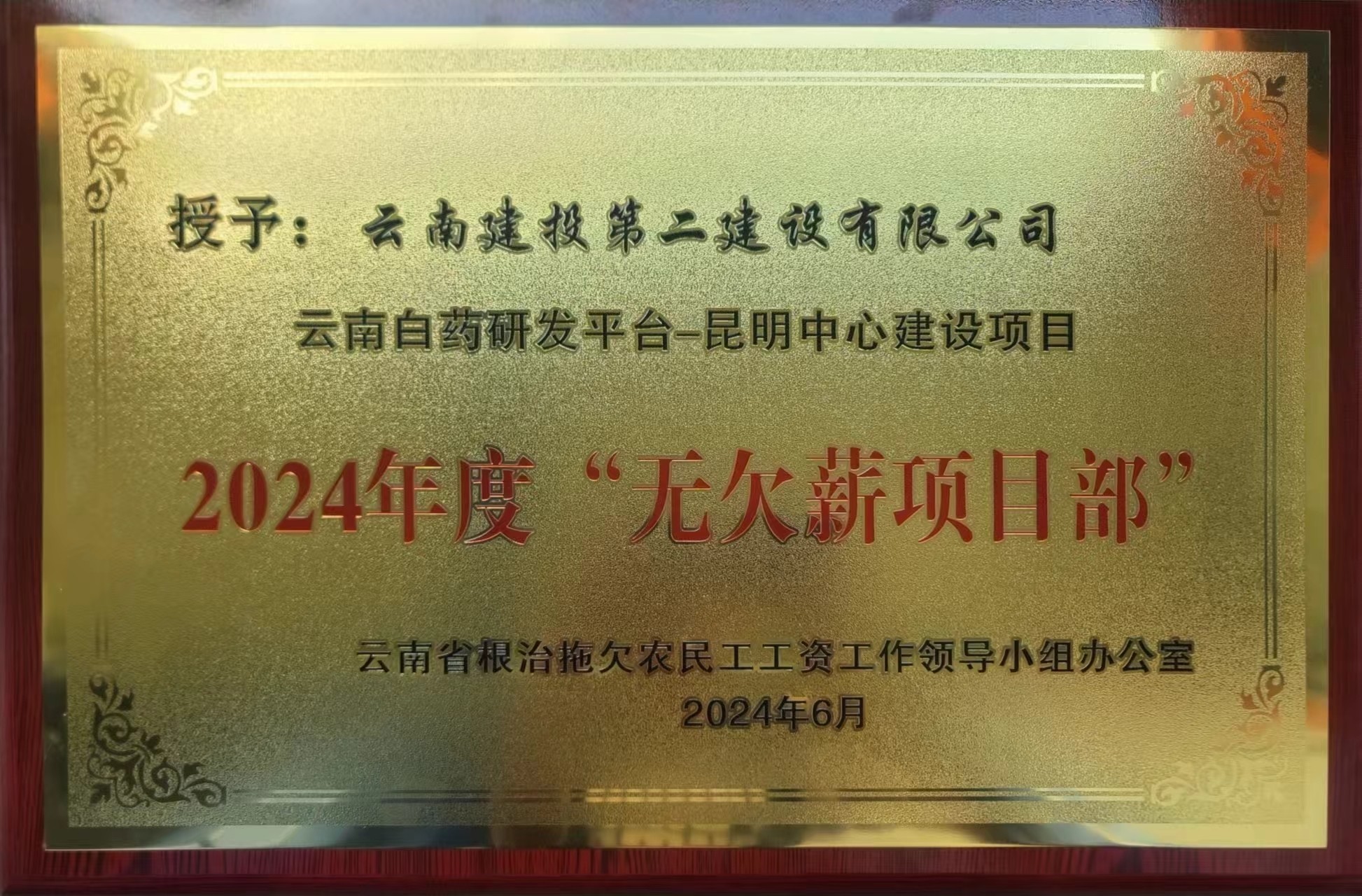 近日,云南省根治拖欠農(nóng)民工工資工作領(lǐng)導(dǎo)小組發(fā)布了云南省2024年度第一批“無(wú)欠薪企業(yè)”和“無(wú)欠薪項(xiàng)目部”認(rèn)定名單,公司第一直管部與第一安裝分公司共同承建的云南白藥研發(fā)平臺(tái)-昆明中心建設(shè)項(xiàng)目獲評(píng)2024年度“無(wú)欠薪項(xiàng)目部”。