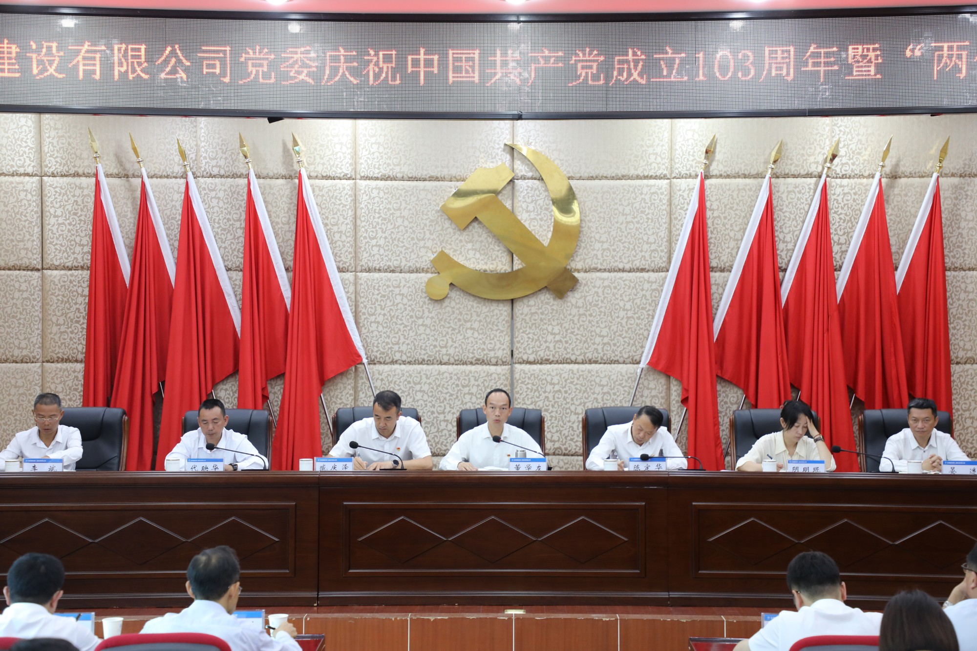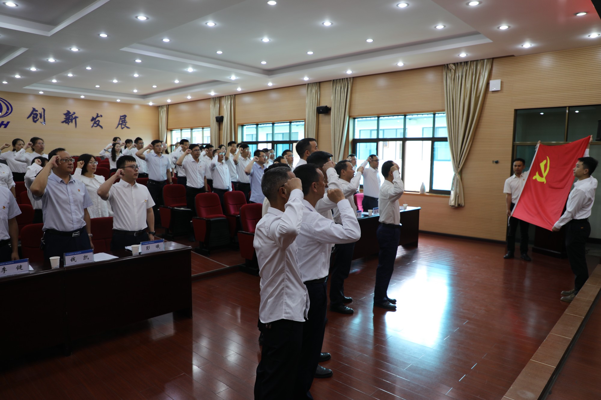 會(huì)議在莊嚴(yán)的國(guó)歌聲中拉開(kāi)帷幕。董學(xué)友帶領(lǐng)全體黨員干部職工重溫入黨誓詞,并向受到表彰的先進(jìn)集體和優(yōu)秀個(gè)人表示崇高的敬意和熱烈的祝賀,向辛勤奮戰(zhàn)在工作崗位上的廣大共產(chǎn)黨員致以衷心的感謝和節(jié)日的問(wèn)候。