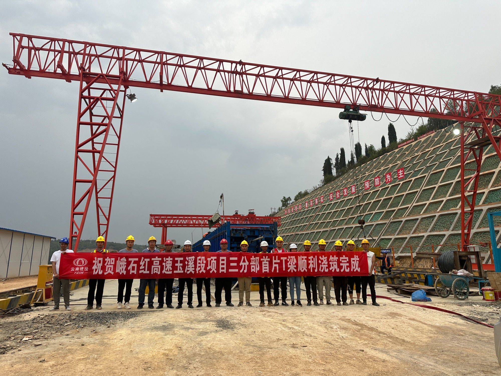 4月19日,第十九直管部承建的峨石紅高速公路(玉溪段)項(xiàng)目三分部首片T梁順利澆筑完成。首片預(yù)制T梁的成功澆筑,標(biāo)志著項(xiàng)目工程建設(shè)進(jìn)入了快車道,打開了嶄新的一頁(yè)。