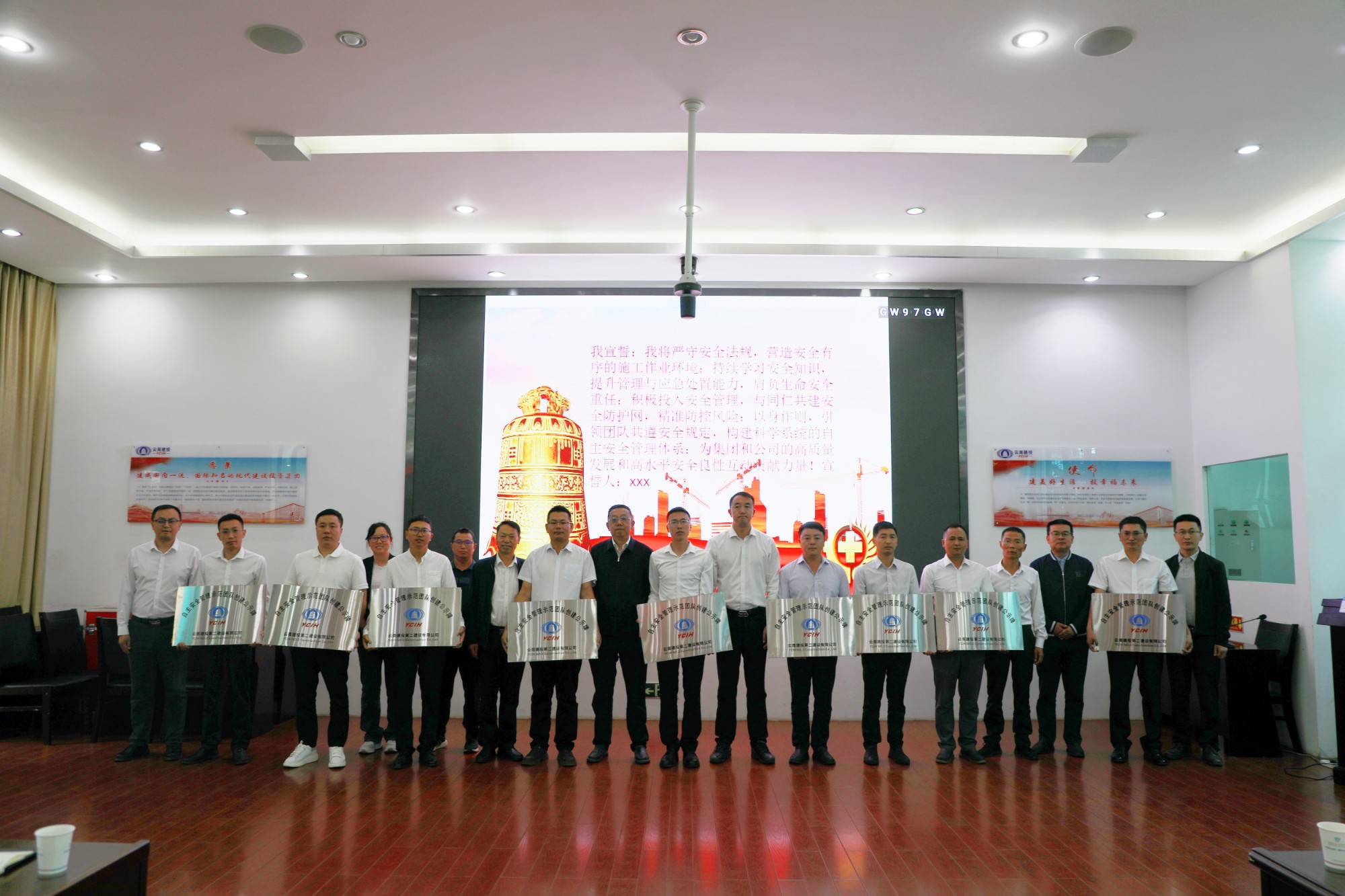 會(huì)上,部分創(chuàng)建團(tuán)隊(duì)項(xiàng)目經(jīng)理匯報(bào)本項(xiàng)目創(chuàng)建方案,九個(gè)創(chuàng)建項(xiàng)目團(tuán)隊(duì)代表進(jìn)行了宣誓,并接受公司領(lǐng)導(dǎo)的授牌。公司董事長(zhǎng)陳定華宣布公司自主安全管理示范團(tuán)隊(duì)創(chuàng)建活動(dòng)正式啟動(dòng)。