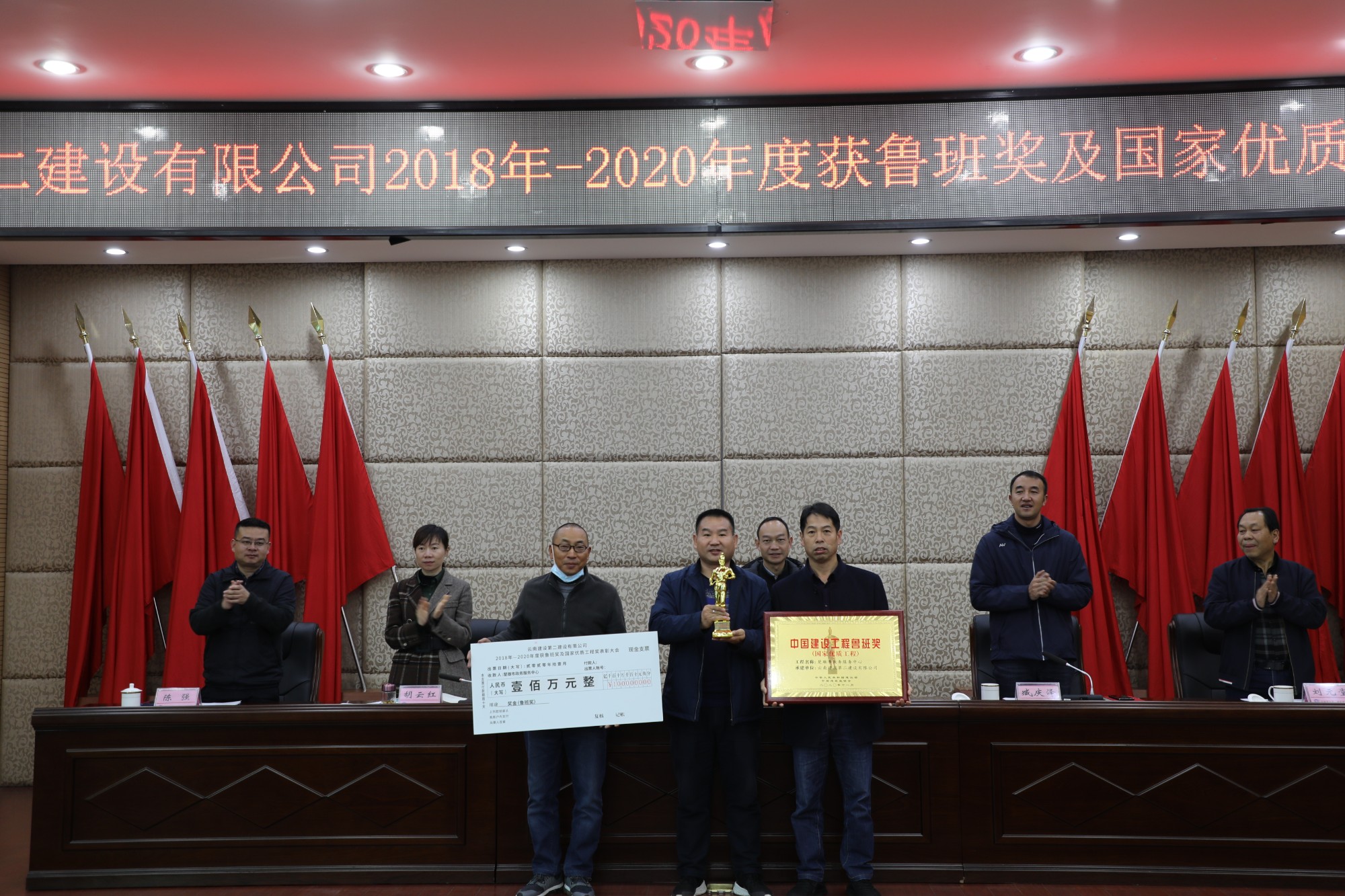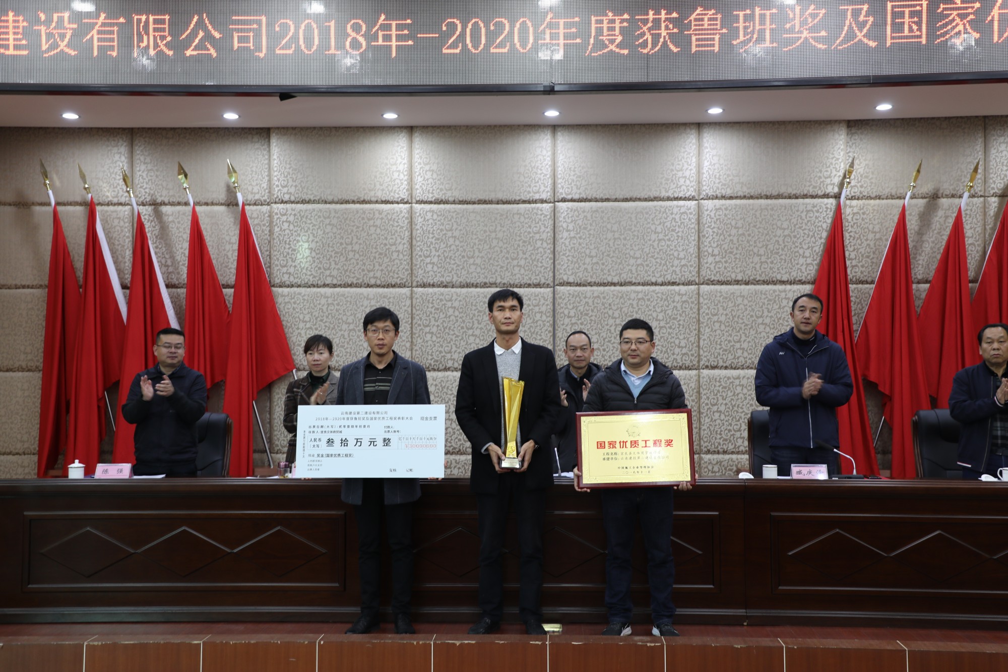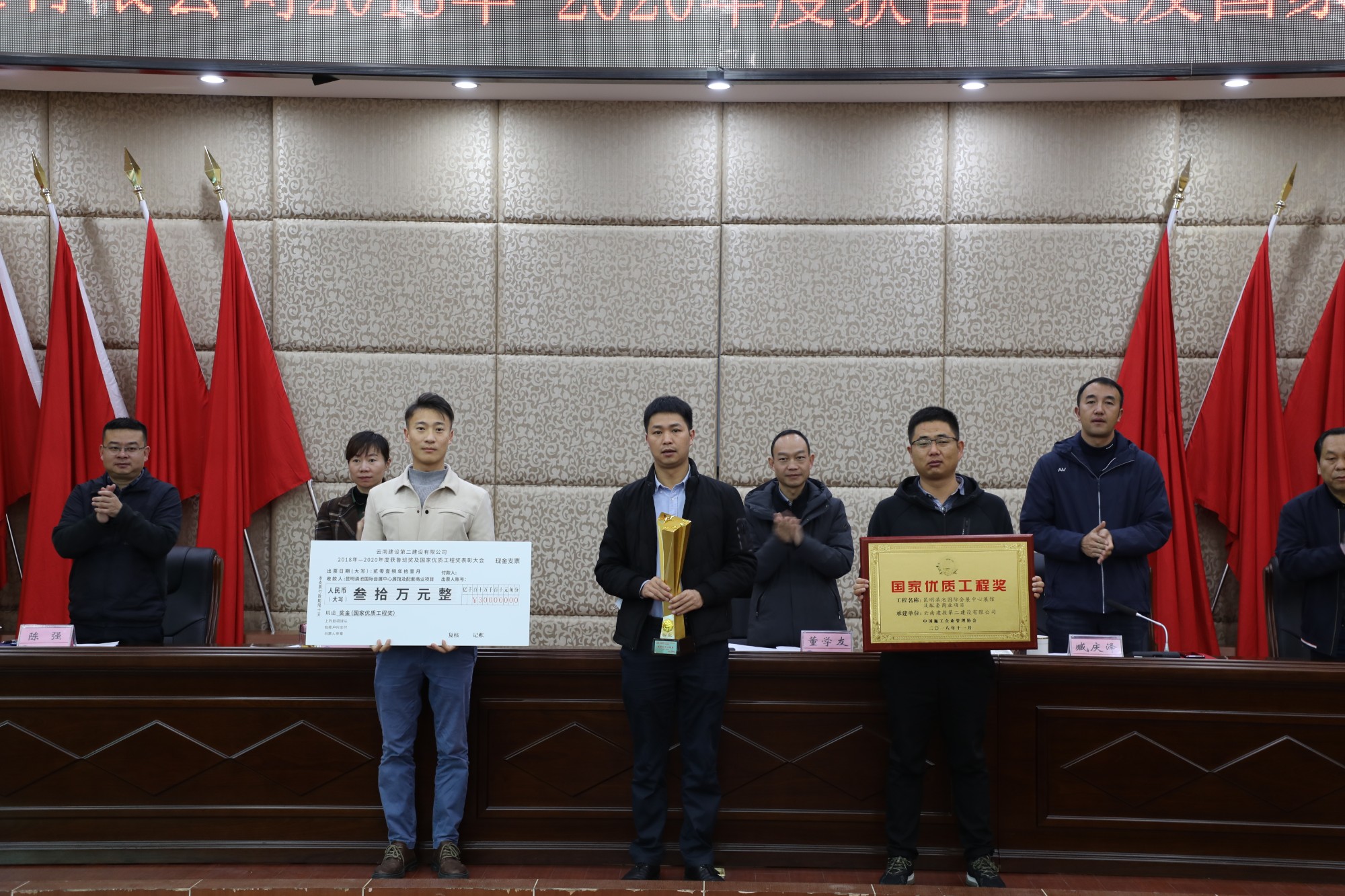 董學友代表公司領導班子對獲獎的單位表示祝賀和感謝,并指出,“十三五”期間,公司在生產(chǎn)、經(jīng)營管理工作保持良好發(fā)展勢頭的同時,質(zhì)量創(chuàng)優(yōu)工作穩(wěn)步推進、精心組織、全面策劃,不僅圓滿完成了2018-2020年度制定的質(zhì)量創(chuàng)優(yōu)指標,質(zhì)量創(chuàng)優(yōu)獎項也再創(chuàng)歷史新高,取得了可喜的成績。公司2018-2020年共獲得魯班獎3項(云南海埂會議中心商務酒店、滇西應用技術大學總部建設項目一號云教育大樓、楚雄市政務服務中心)、國家優(yōu)質(zhì)工程獎3項(宜良文體商貿(mào)城、昆明滇池國際會展中心展館及配套商業(yè)項目、昆明院科研實驗大樓建設項目)。根據(jù)公司《技術質(zhì)量管理手冊》中《工程項目創(chuàng)優(yōu)獎勵制度》的規(guī)定及公司《關于2018-2020年度魯班獎、國家優(yōu)質(zhì)工程獎的決定》。公司對獲獎項目,和主要完成單位(第一直管部、第二直管部、第九直管部、第十三直管部、第十五直管部、第一安裝分公司和第二安裝分公司)進行表彰,對各獲獎基層單位依照文件規(guī)定頒發(fā)相應的獎勵。希望獲獎單位戒驕戒躁,繼續(xù)發(fā)揚工匠精神,為公司創(chuàng)建更多精品工程。