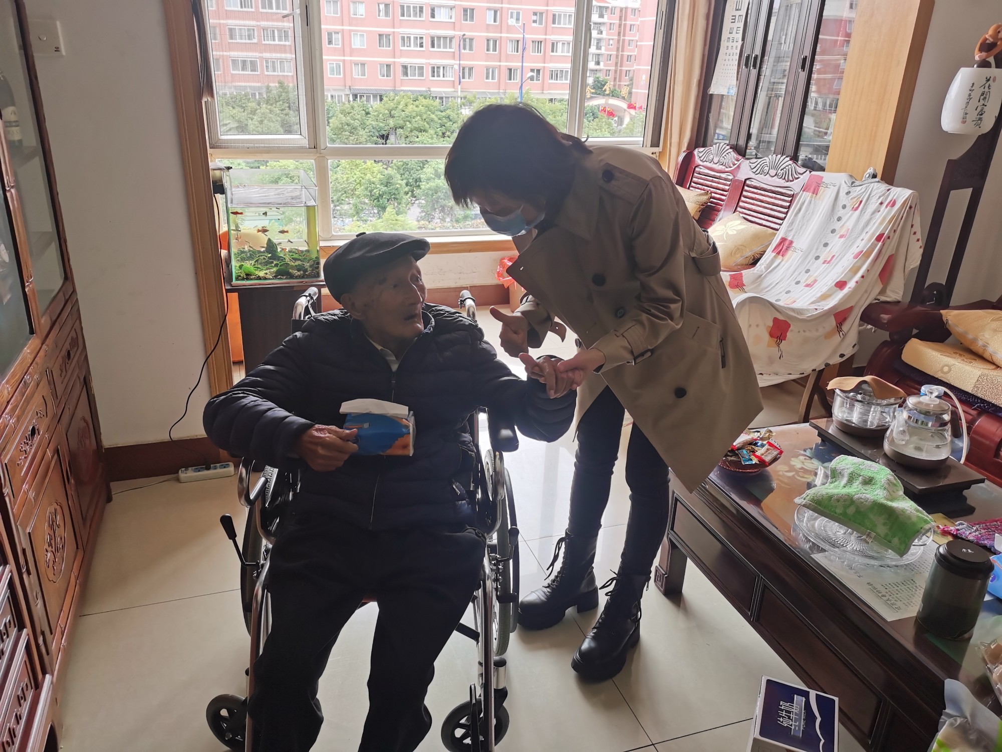 胡云紅與離休干部進(jìn)行親切交談,詢問他們的身體狀況及生活情況,并叮囑他們近期天氣轉(zhuǎn)涼,要注意增添衣裳,做好秋冬季防寒保暖,放寬心態(tài),受慰問的離休干部及其家屬也感謝公司領(lǐng)導(dǎo)給他們的關(guān)心與關(guān)愛。