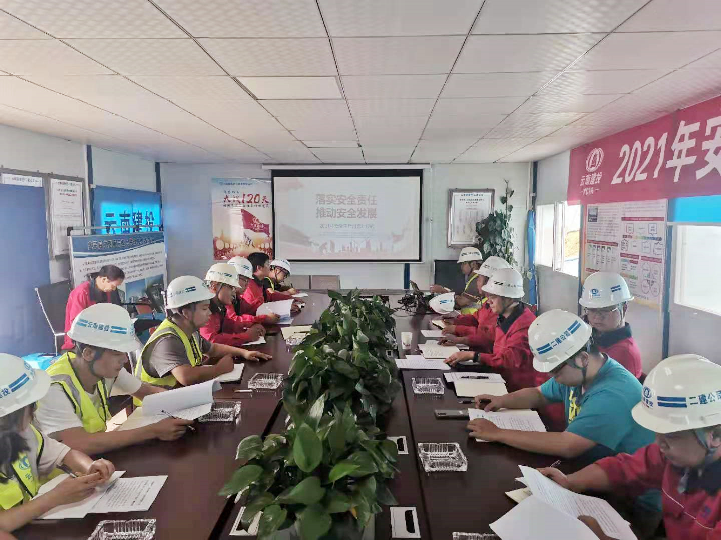 騰沖項目項目經(jīng)理帶領(lǐng)全員學(xué)習(xí)了公司2021年“安全生產(chǎn)月”活動方案,并強(qiáng)調(diào)到:項目要嚴(yán)格落實各項整改任務(wù),深入排查安全風(fēng)險隱患,扎實推進(jìn)問題整改。