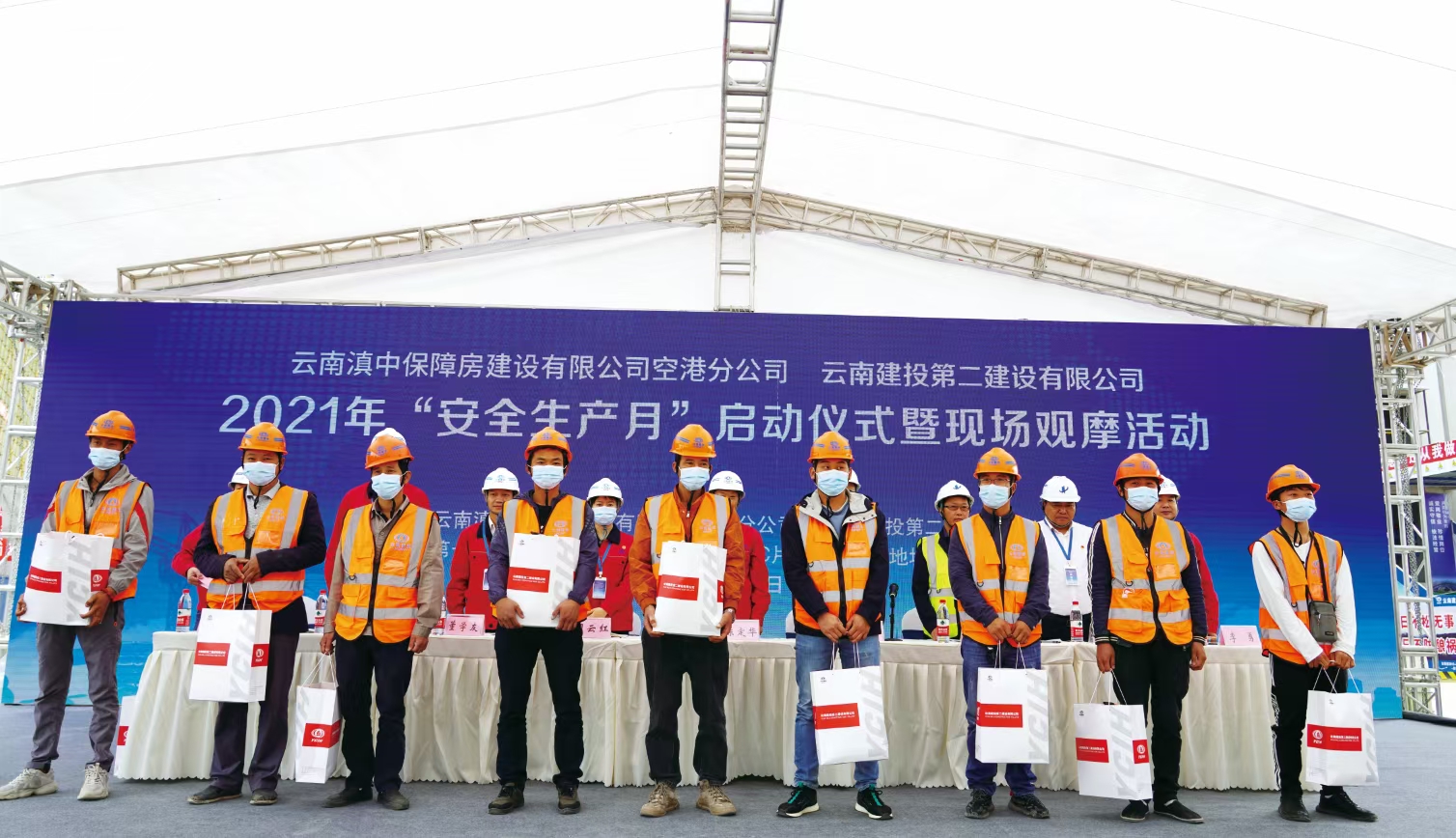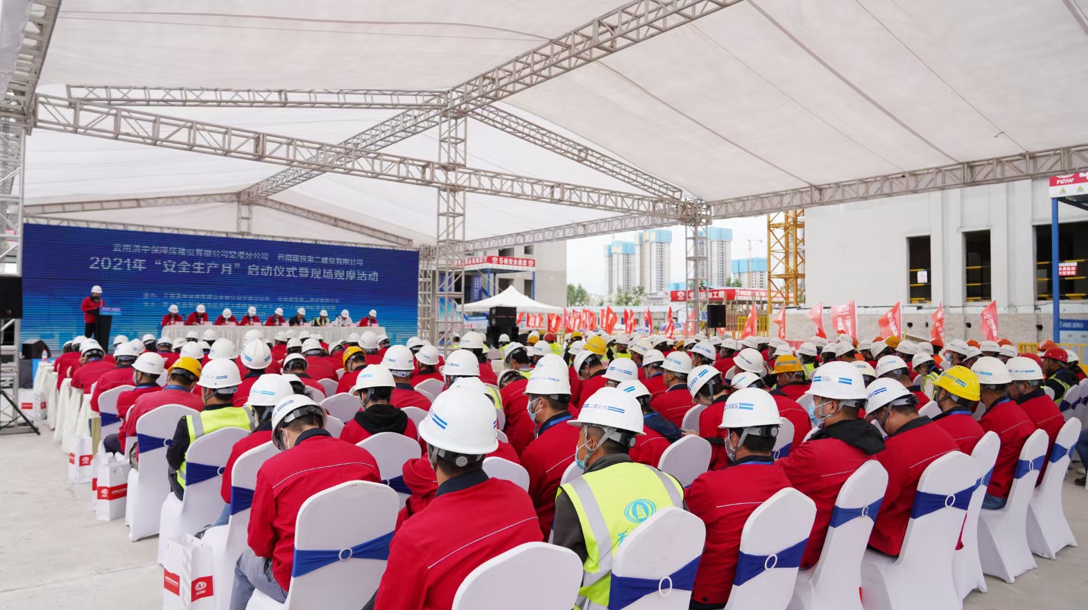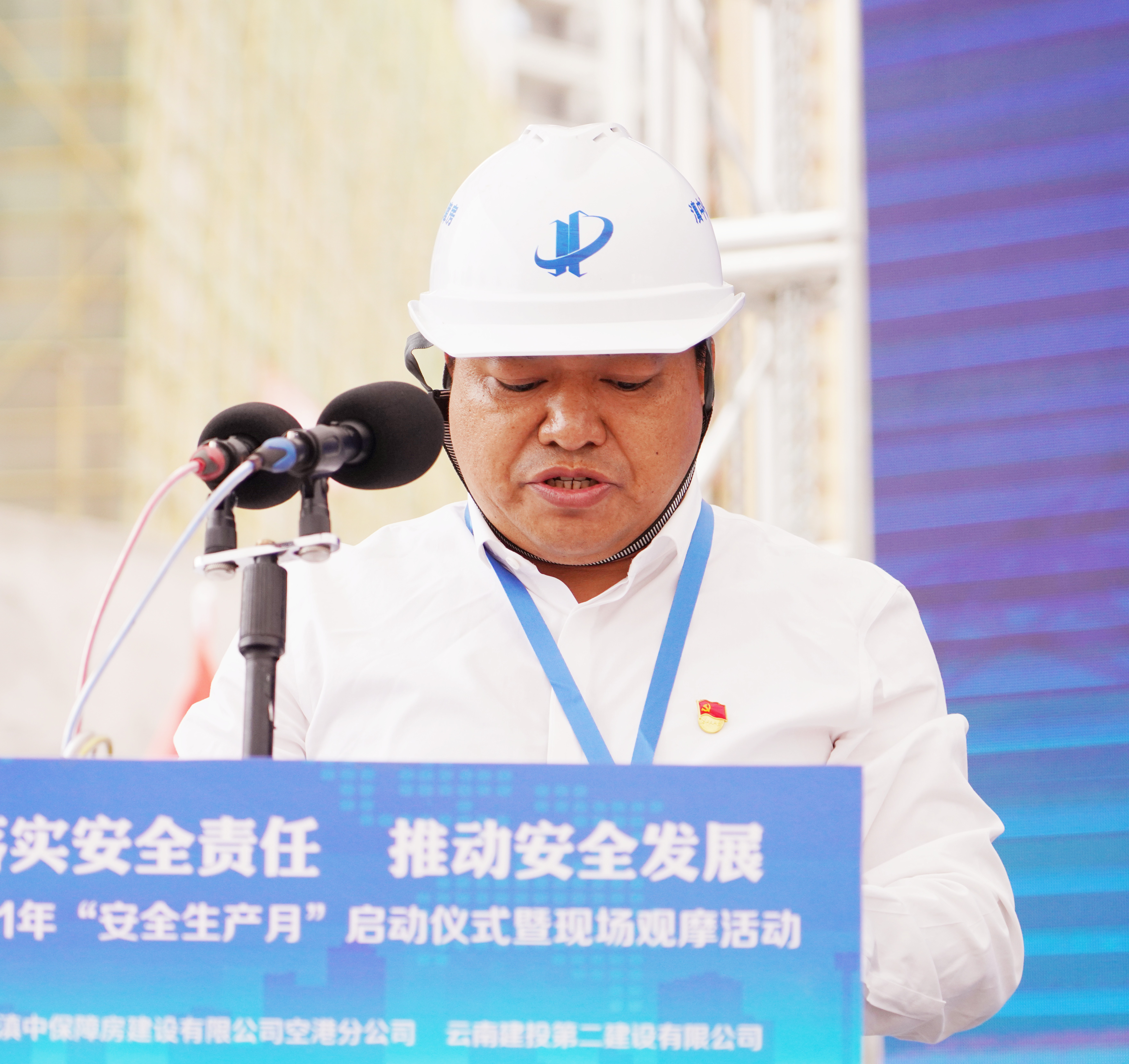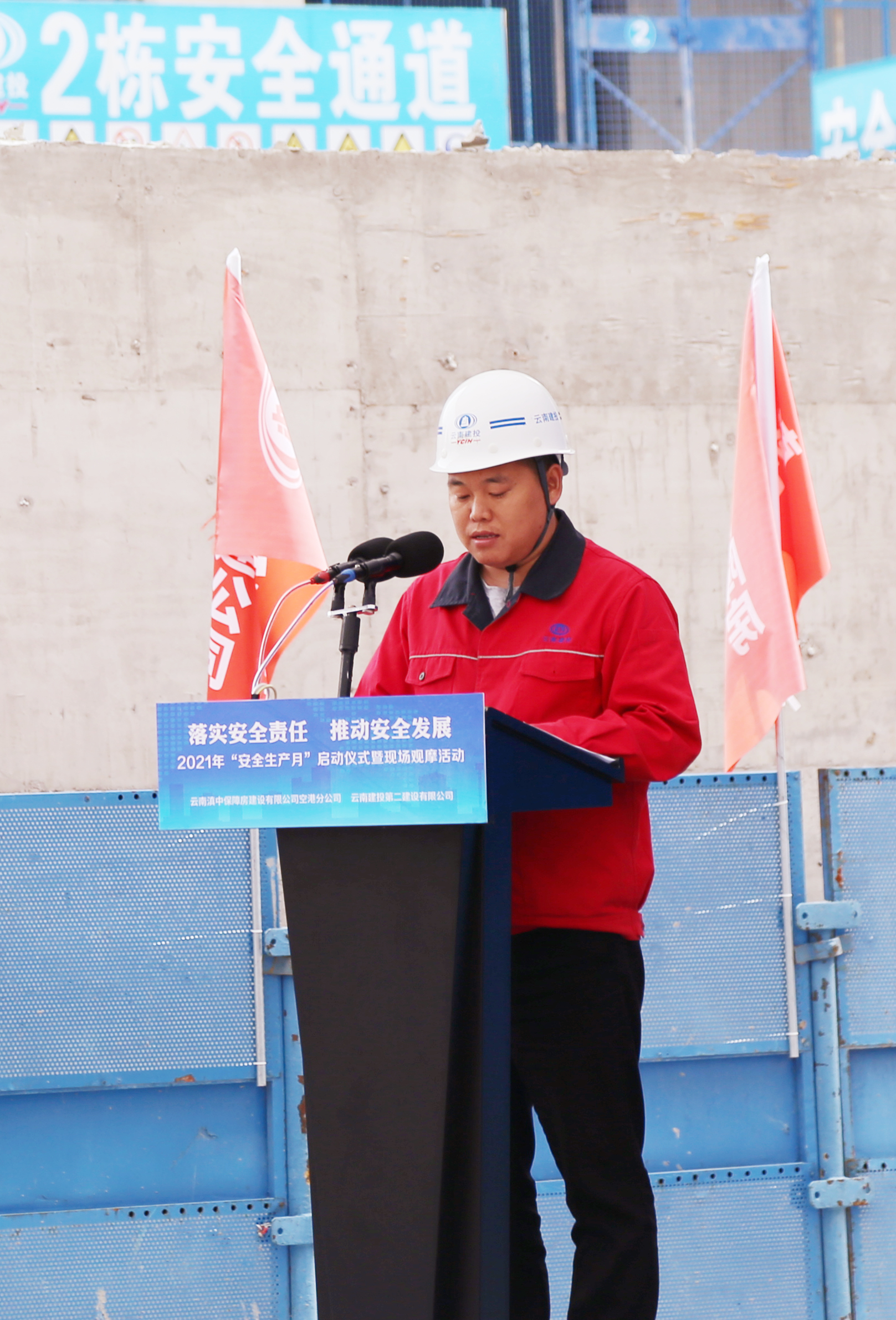 與會領(lǐng)導(dǎo)有:云南滇中保障房建設(shè)有限公司總經(jīng)理茶本偉,安全總監(jiān)、工程部經(jīng)理劉崇華,空港分公司總經(jīng)理陳云,公司黨委委員、工會主席胡云紅,公司黨委委員、副總經(jīng)理董學(xué)友,副總經(jīng)理臧慶澤,總經(jīng)理助理、第十五直管部經(jīng)理李勇。公司各職能部門、各基層單位代表,云南滇中保障房有限公司空港分公司及空港分公司各參建代表,農(nóng)民工代表,項目職工代表參與啟動儀式。儀式由公司安全總監(jiān)羅雪剛主持。