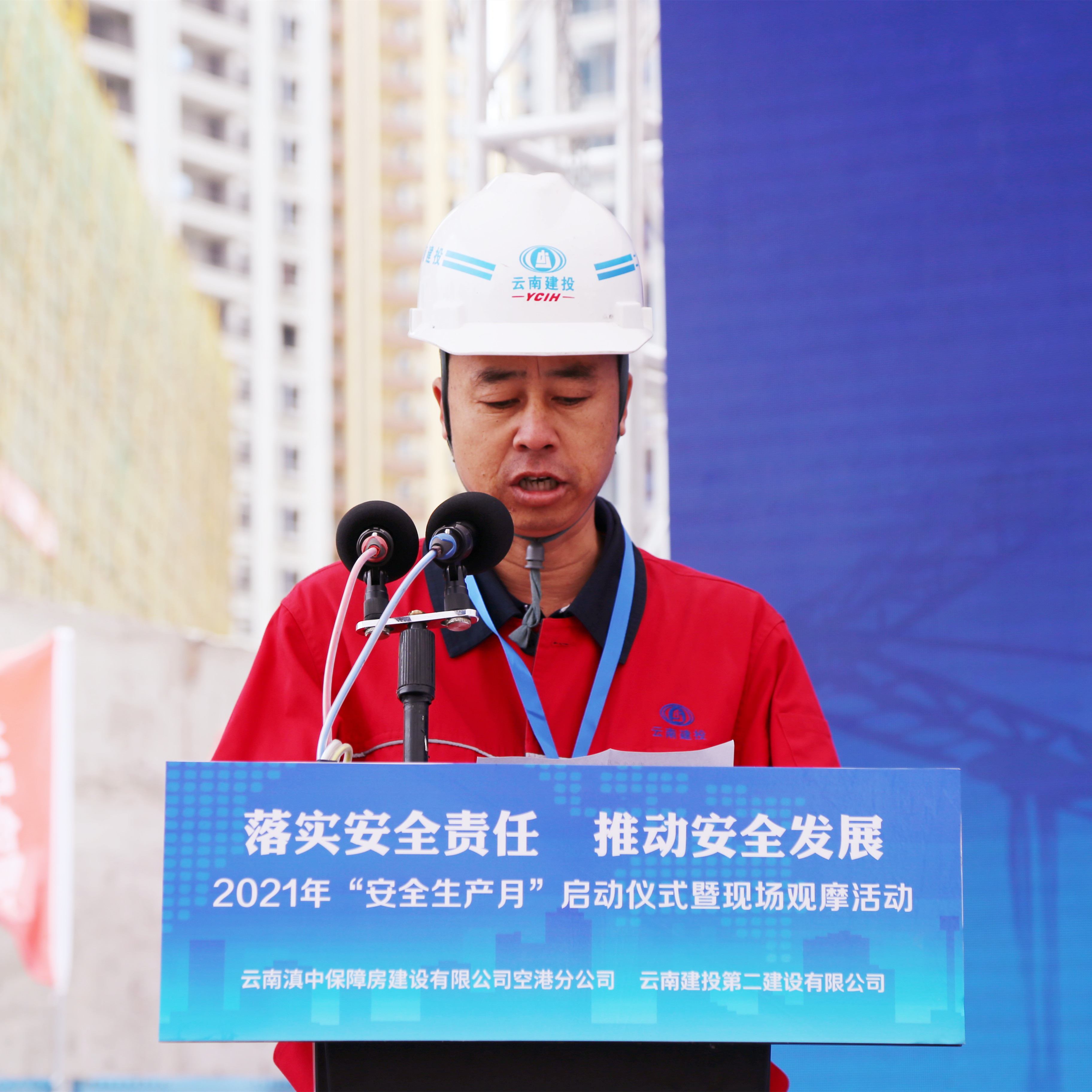 6月4日上午,公司與云南滇中保障房建設(shè)有限公司空港分公司在第十五直管部承建的空港經(jīng)濟(jì)區(qū)大板橋集鎮(zhèn)C片區(qū)(C-1地塊)項目召開“安全生產(chǎn)月”啟動儀式暨動員大會。公司黨委副書記、董事長陳定華作題為《鉚足干勁、狠抓落實,將安全責(zé)任勇?lián)谏怼返膭訂T講話并宣布“安全生產(chǎn)月”活動正式啟動。
