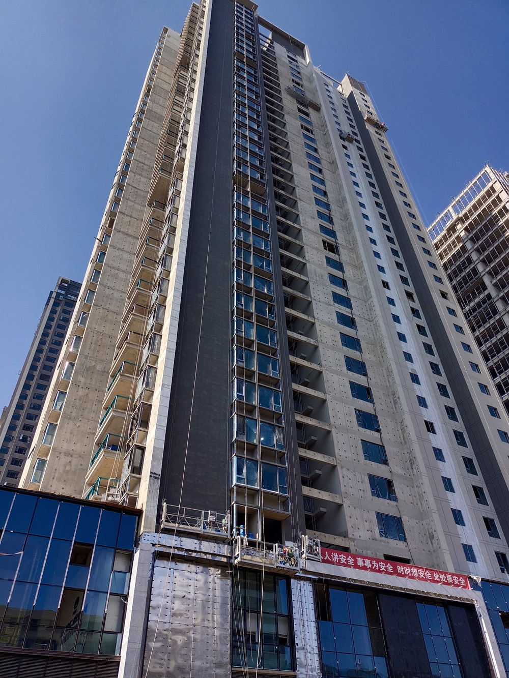 據(jù)悉,8#地塊總建筑面積82378.08m2,其中地上建筑面積63447.45㎡,地下建筑面積18930.63㎡。由一棟超高層住宅(1棟-36層 建筑總高度111.25m);一棟高層辦公樓(2棟-25層建筑總高度99.25m);一棟多層商業(yè)和一個(gè)兩層地下室組成。該工程自2018年11月10日開(kāi)工,歷時(shí)兩年零四個(gè)月,順利完成節(jié)點(diǎn)目標(biāo)任務(wù)。