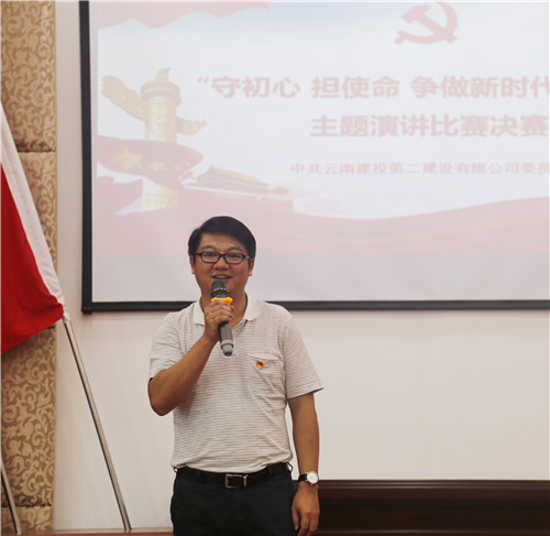 公司黨委“守初心 擔(dān)使命 爭(zhēng)做新時(shí)代奮斗者”演講比賽初賽于8月14日下午開(kāi)始,來(lái)自各基層單位26名員工參加比賽,為保證比賽公平公正,本次演講比賽邀請(qǐng)?jiān)颇鲜⊙葜v學(xué)會(huì)副會(huì)長(zhǎng)馬克強(qiáng)教授作為專(zhuān)業(yè)評(píng)委。經(jīng)過(guò)激烈角逐,共有10名選手脫穎而出,亮相決賽舞臺(tái)。8月21日下午,決賽正式開(kāi)始,公司特邀云南省演講學(xué)會(huì)會(huì)長(zhǎng)李暾教授作為專(zhuān)業(yè)評(píng)委,公司黨委書(shū)記、副董事長(zhǎng)萬(wàn)向遵,公司黨委委員、紀(jì)委書(shū)記黃開(kāi)柱,公司黨委委員、工會(huì)主席胡云紅,公司總經(jīng)理助理趙高仲出席比賽并擔(dān)任評(píng)委。