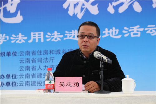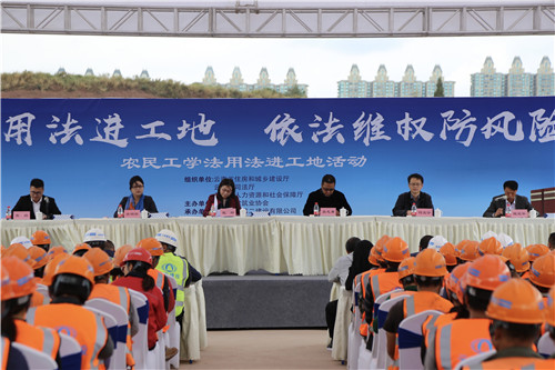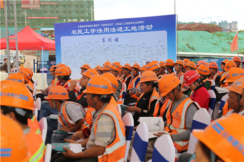 如何保護(hù)農(nóng)民工合法權(quán)益、幫助農(nóng)民工合法維權(quán)?農(nóng)民工作為促進(jìn)經(jīng)濟(jì)社會(huì)發(fā)展的一支重要力量,加強(qiáng)農(nóng)民工學(xué)法用法工作受到了國(guó)家的高度重視。11月11日下午,由省住房和城鄉(xiāng)建設(shè)廳、省司法廳、省人社廳組織,云南省建筑業(yè)協(xié)會(huì)主辦、公司承辦的“學(xué)法用法進(jìn)工地,依法維權(quán)防風(fēng)險(xiǎn)”農(nóng)民工學(xué)法用法進(jìn)工地活動(dòng)在公司云南財(cái)經(jīng)大學(xué)安寧校區(qū)項(xiàng)目舉辦。省住房和城鄉(xiāng)建設(shè)廳建筑市場(chǎng)監(jiān)管處處長(zhǎng)吳志勇、省人社廳勞動(dòng)保障監(jiān)察局局長(zhǎng)何亞寧、省司法廳《法治與社會(huì)》總編輯趙玲、省建筑業(yè)協(xié)會(huì)會(huì)長(zhǎng)吳明燕、公司董事長(zhǎng)陳定華出席活動(dòng)。