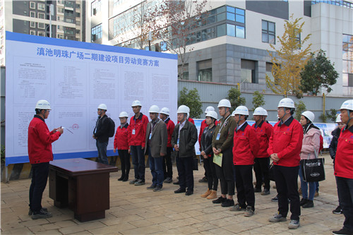 12月8日下午,云南省2018年度重點(diǎn)工程勞動(dòng)競(jìng)賽調(diào)研組蒞臨公司滇池明珠廣場(chǎng)二期項(xiàng)目指導(dǎo)檢查,省總工會(huì)勞動(dòng)和經(jīng)濟(jì)工作部部長(zhǎng)張澤平一行十人進(jìn)行調(diào)研,集團(tuán)工會(huì)副主席趙艷波、公司董事長(zhǎng)陳定華、黨委書記邢儒民、工會(huì)主席胡云紅及相關(guān)職能部門負(fù)責(zé)人陪同。