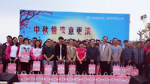 “喜迎中秋慶團(tuán)圓,歡樂笑語萬里傳”,在中國(guó)傳統(tǒng)佳節(jié)“中秋節(jié)”來臨之際。公司常務(wù)副總經(jīng)理馬兵、工會(huì)主席胡云紅、副總經(jīng)理董學(xué)友帶領(lǐng)公司工會(huì)到大理環(huán)湖截污、香麗高速、昭通昭陽區(qū)、玉溪大戛高速、紅河元蔓高速等項(xiàng)目開展2017年中秋慰問活動(dòng),并代表公司及公司領(lǐng)導(dǎo)班子感謝節(jié)日期間仍然堅(jiān)守在施工一線的高原鐵軍們,為他們送上節(jié)日的祝福及問候。