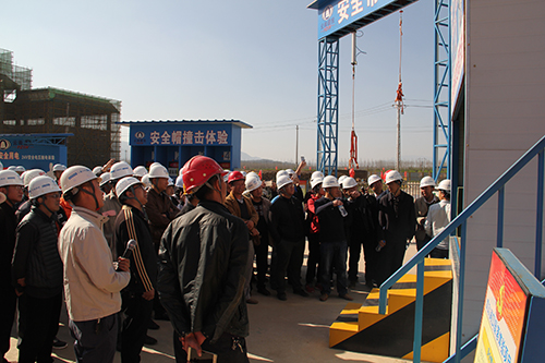在項目部管理人員的帶領下下,觀摩團先后參觀了樣板展示區(qū)、質量安全體驗區(qū)、現場施工工藝等。在質量安全體驗區(qū),觀摩團先后參觀了防穿刺體驗、工友之約、移動平臺、傾倒平臺、觸電體驗、洞口墜落體驗等各體驗項目,項目部管理人員一一為大家作了講解和演示。在樣板展示區(qū),觀摩團先后參觀了外架搭建、墻體砌磚、混凝土澆筑、墻體抹灰等各工序的質量、技術標準,大家不時的拿出手機拍照,仔細觀察各施工環(huán)節(jié)的質量技術標準及細節(jié),紛紛表示贊許。