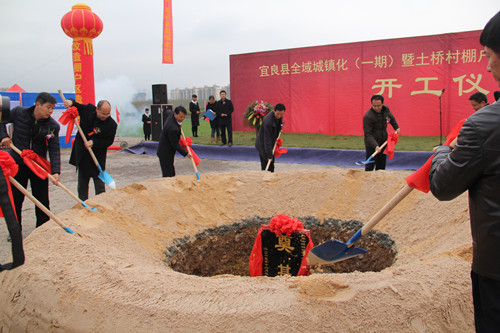 當(dāng)天,宜良縣委書(shū)記傅希及縣委、縣政府部分領(lǐng)導(dǎo)班子成員,昆明發(fā)展投資集團(tuán)有限公司黨委書(shū)記、董事長(zhǎng)曾鋒出席開(kāi)工儀式,公司董事長(zhǎng)陳定華在開(kāi)工儀式上致辭,公司領(lǐng)導(dǎo)班子成員及公司第一、十六直管部和第二項(xiàng)目經(jīng)理部、機(jī)關(guān)部分職能部門(mén)職工參加開(kāi)工儀式。陳定華在致辭時(shí)表示,棚戶(hù)區(qū)改造項(xiàng)目是政府為改造城鎮(zhèn)危舊住房、改善困難家庭住房條件而推出的一項(xiàng)民心工程,近年來(lái)公司先后參與了 綏江移民工程、昭通市棚戶(hù)區(qū)改造項(xiàng)目等重大項(xiàng)目,公司將繼續(xù)派出精干隊(duì)伍建設(shè)好土橋村棚戶(hù)區(qū)改造項(xiàng)目,把土橋村棚戶(hù)區(qū)改造項(xiàng)目建成讓政府滿意、讓群眾滿意的放心工程。