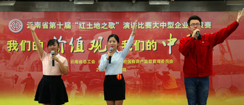 本屆紅土地之歌演講比賽于24日至25日在黃土坡省工青婦干校4號(hào)樓二樓會(huì)議室舉行,由云南省總工會(huì)和省國(guó)資委聯(lián)合舉辦,共有來(lái)自全省34家大中型企業(yè)的71名選手、54個(gè)節(jié)目參加角逐,競(jìng)爭(zhēng)激烈。集團(tuán)工會(huì)選派了《沙漠里的戰(zhàn)斗》和《媽媽的心愿》兩個(gè)節(jié)目參加本屆演講比賽。在參加比賽之前,集團(tuán)團(tuán)委和公司團(tuán)委多次組織相關(guān)人員進(jìn)行排練,經(jīng)過(guò)多次修改最終確定演講稿內(nèi)容,并于本月22日、23日分別在昆明滇池國(guó)際會(huì)展中心項(xiàng)目和四公司雙河灣項(xiàng)目進(jìn)行預(yù)演。
