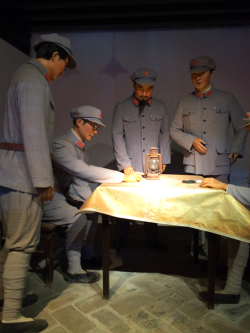 成為“紅軍”讓眾人都興奮不已,在柯渡紀(jì)念館里,大家懷著虔誠和敬仰的心,認(rèn)真聆聽講解員講解,靜心參觀中央紅軍總部長征駐地舊址、總參謀部作戰(zhàn)室,毛澤東、周恩來、劉伯承、朱德等同志長征路居丹桂村的休息室及烈士遺物,深刻體會這一堂生動的歷史革命課。在紀(jì)念館,一張張革命歷史圖片、一句句革命歷史介紹、一件件革命先烈的物品、一個個革命雕塑實景生動、形象、系統(tǒng)地展示出了這里的紅軍革命歷史,讓大家真切地感受到了紅色精神。參觀后,大家還坐在草坪上,唱起了一首首紅歌,嘹亮的軍歌聲結(jié)束了一天的旅程。