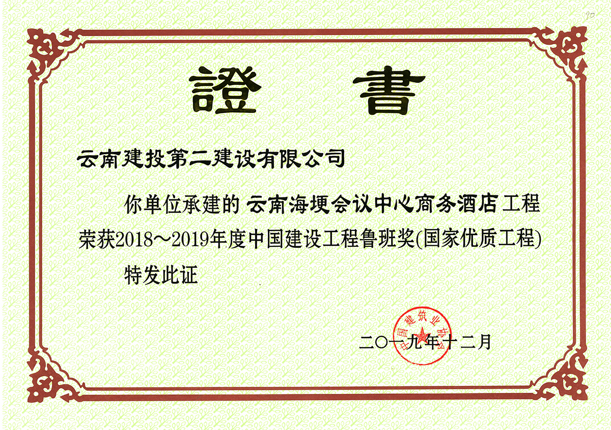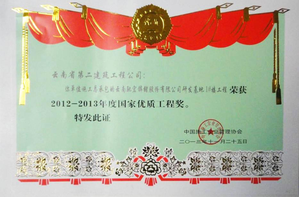 公司承建的項目先后獲得魯班獎 5 項,中國安裝之星 4 項,中國有色金屬工業(yè)優(yōu)質(zhì)工程 7 項,全國市政金杯示范獎 1 項,中國公路交通優(yōu)質(zhì)工程獎1項,國家級優(yōu)質(zhì)工程 10 項以及省級優(yōu)質(zhì)工程 90 余項。